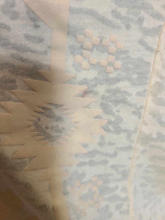 Joli top jaune pâle avec motifs. 58 cm de long et 48 cm d'aisselle à aisselle. Légèrement transparent, coupé plutôt en carré. Léger et confortable tout en étant élégant à porté. En bon état, une petite trace, voir dernière photo. Maison non-fumeur Envoi soigné #maddy71femme38ete #maddy71femme38