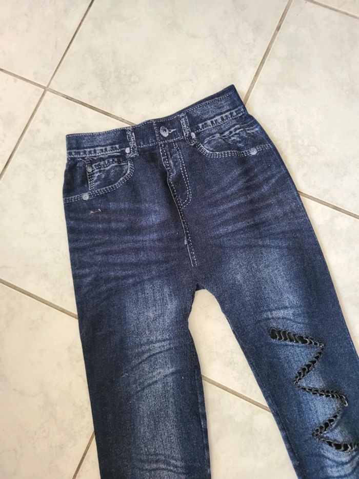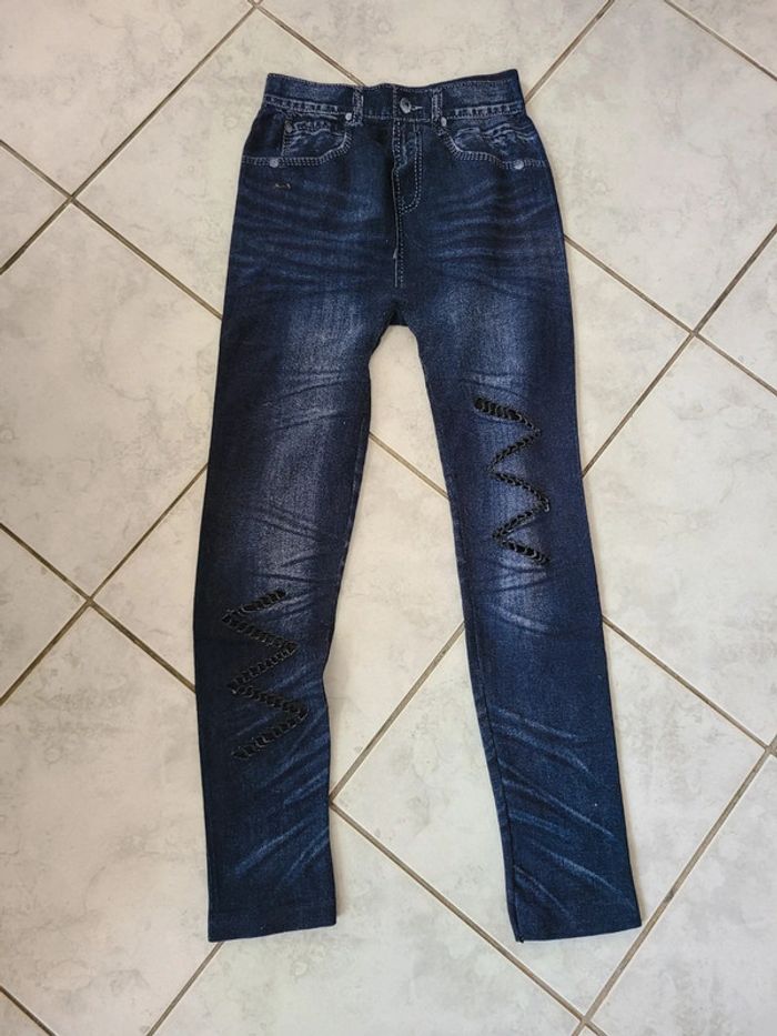 Legging epais imitation jeans à trous. Stylé, confortable et très agréable à porté. En bon état. 90 cm de long et 30 cm de taille. Maison non-fumeur Envoi soigné #maddy71femmetailleunique