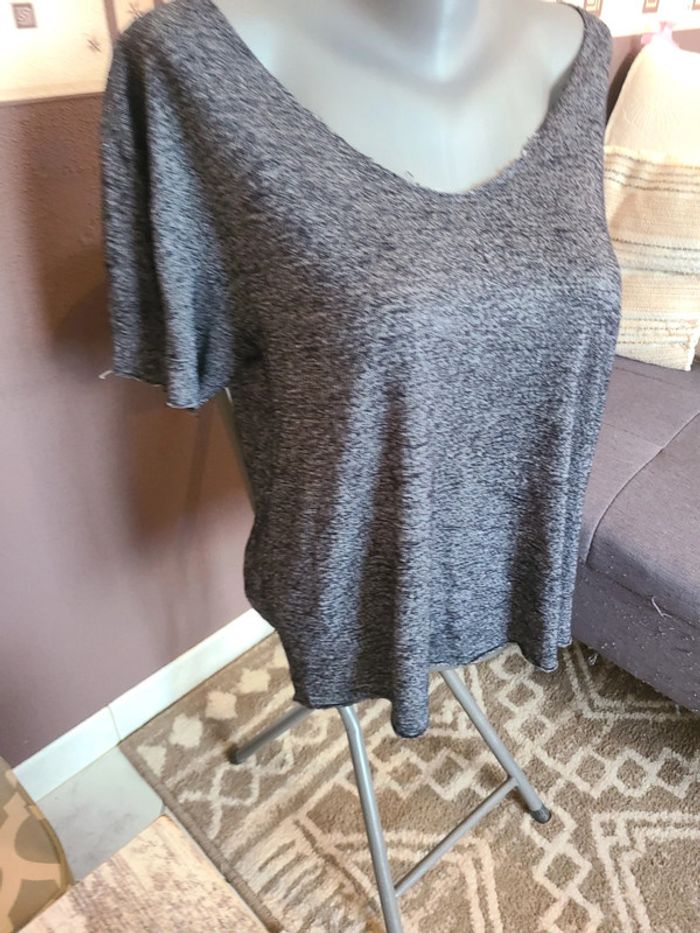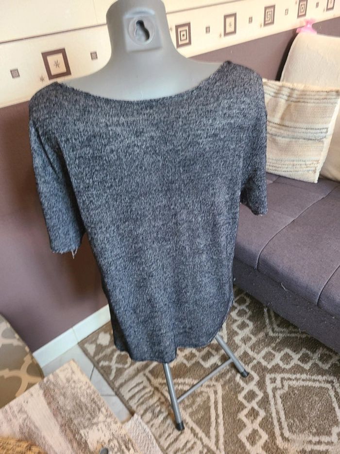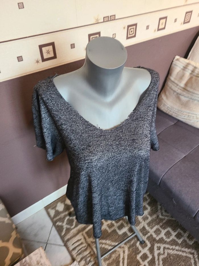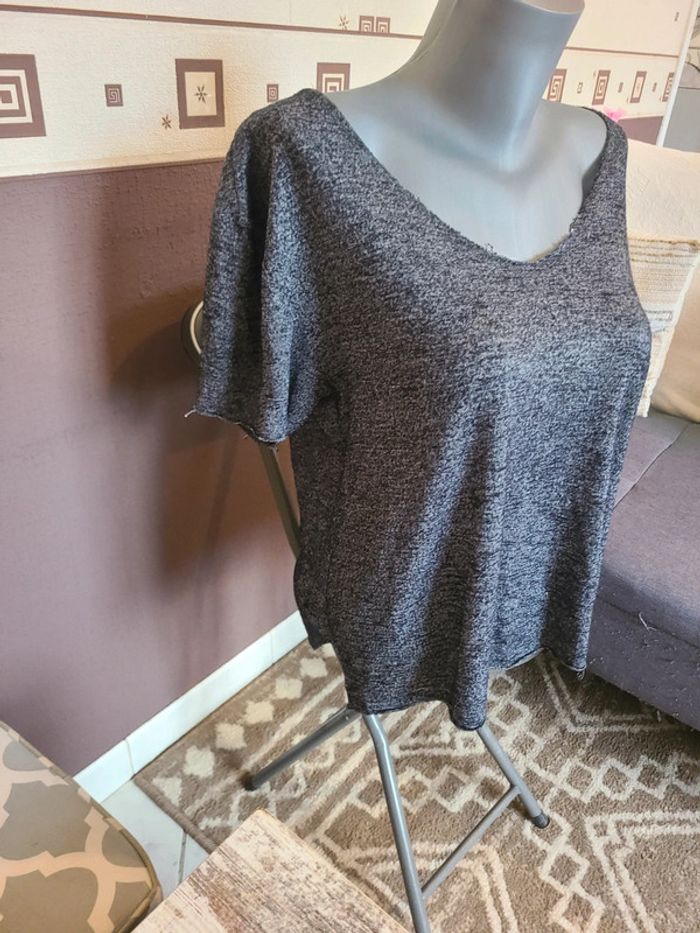 Top gris ample. Matière entre pull très fin et tee shirt. Gris chiné foncé. 60 cm de long devant, 67 cm arrière et 53 cm d'aisselle à aisselle. Conviendra bien à un 40 voir 40/42. Étiquette coupée. État plutôt bon. Maison non-fumeur Envoi soigné #maddy71femme40 #maddy71femme42