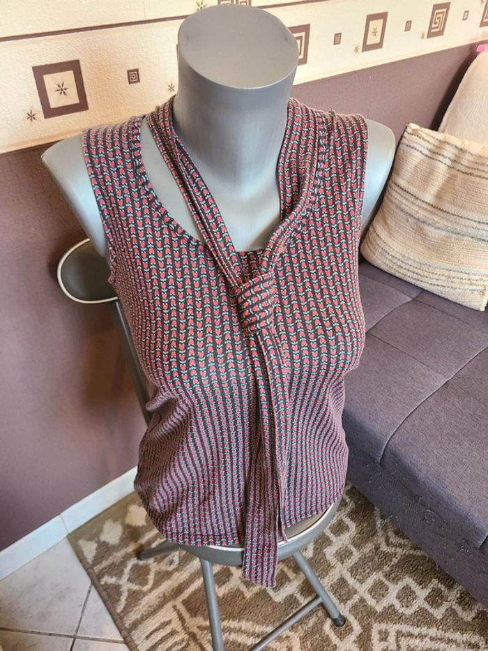 Top avec lien à noué ou attachécomme on le souhaite, ce qui lui donne un côté plus sexy et/ou élégant, suivant le nouage. 60 cm de long et 39 cm d'aisselle à aisselle. Conviendra à un 36 ou 36/38. Bon état Maison non-fumeur Envoi soigné #maddy71femme38ete #maddy71femme38 #maddy71femme36