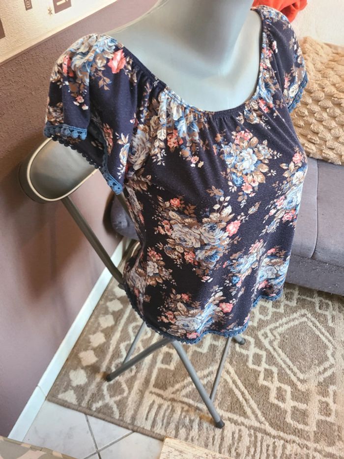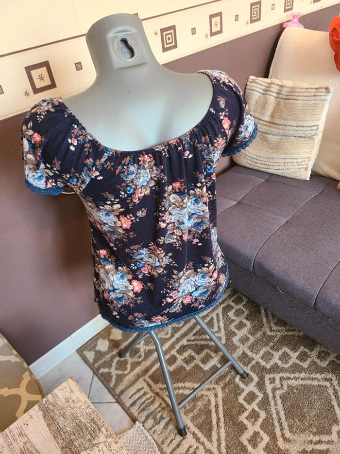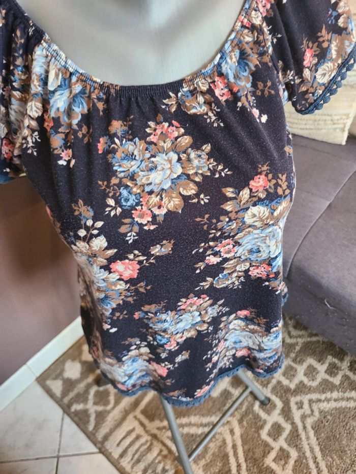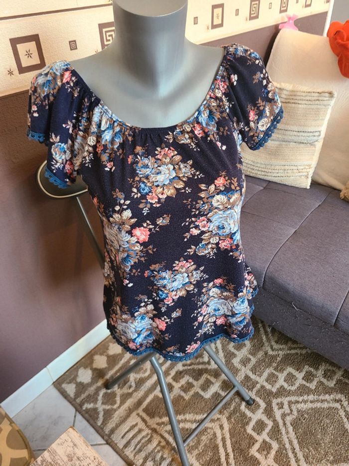 Joli top estival. Taille 38. 55 cm de long et 41 cm d'aisselle à aisselle. Échancré sur la nuque/cou/épaules. Jolis petits pompons en finitions. Il est en bon état. Maison non-fumeur Envoi soigné Étiquette coupée. #maddy71femme38ete #maddy71femme38
