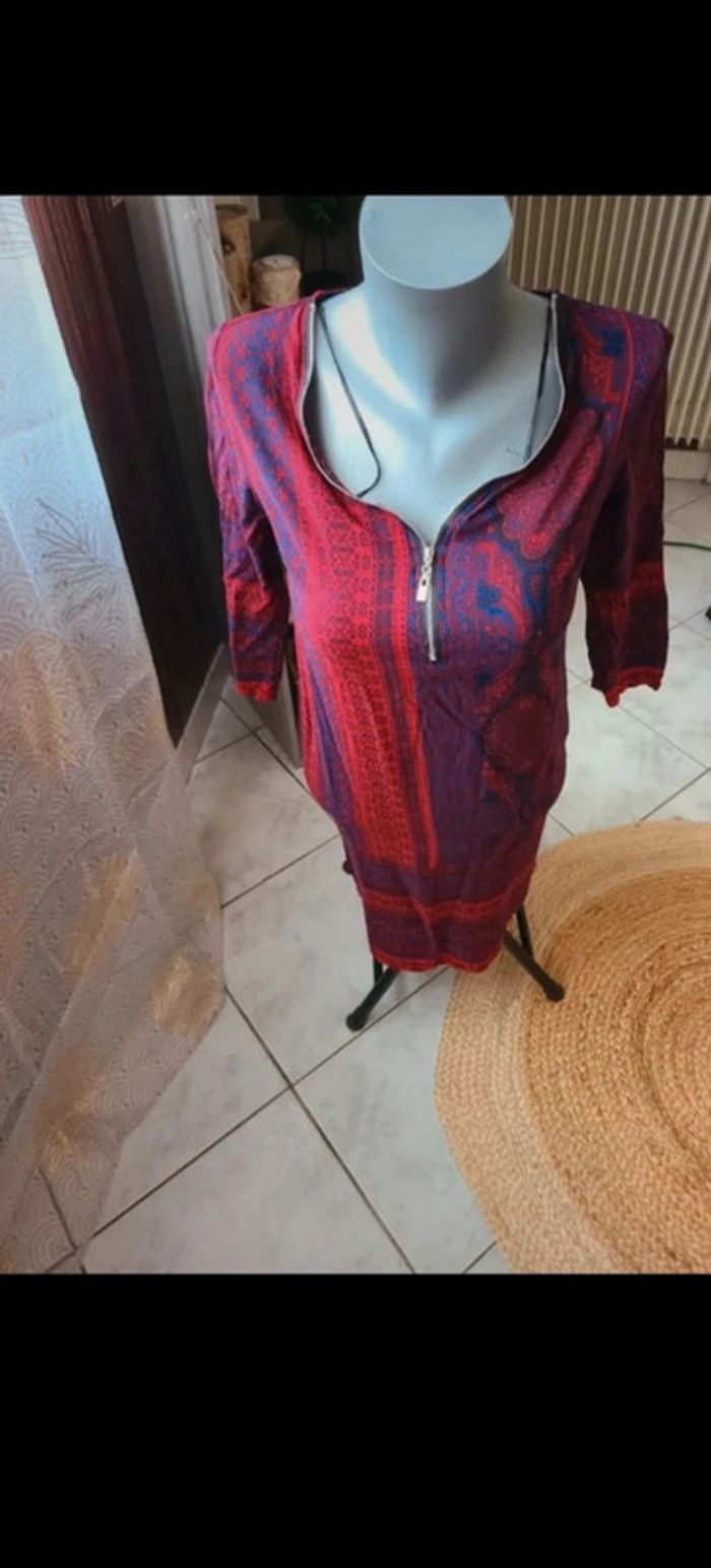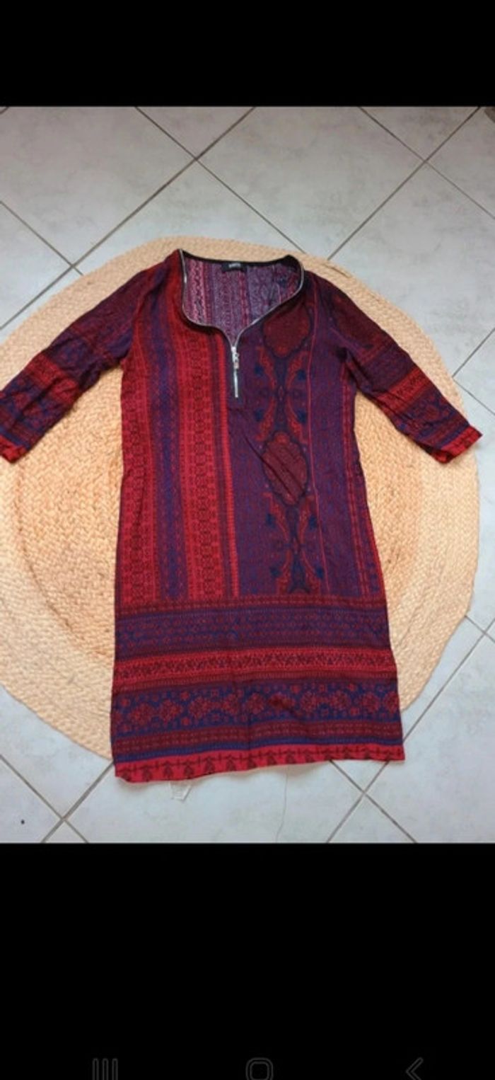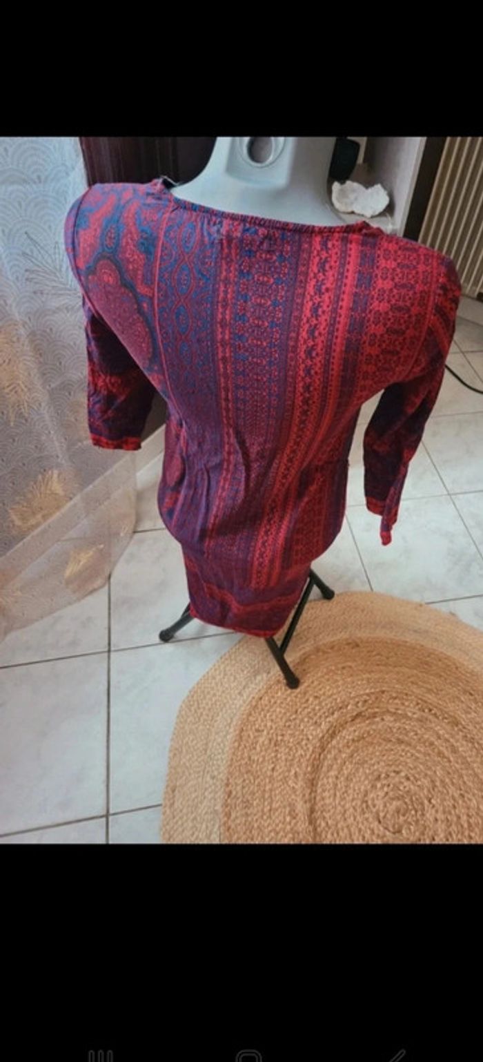 Petite robe légère ou tunique, suivant votre taille 😊 Manches 3/4. Fluide et agréable. 83 Cm de long 42 cm d'aisselle à aisselle En vraiment bon état. Colori bordeaux/rouge et violine. Mim. Maison non-fumeur Envoi soigné #maddy71femme36