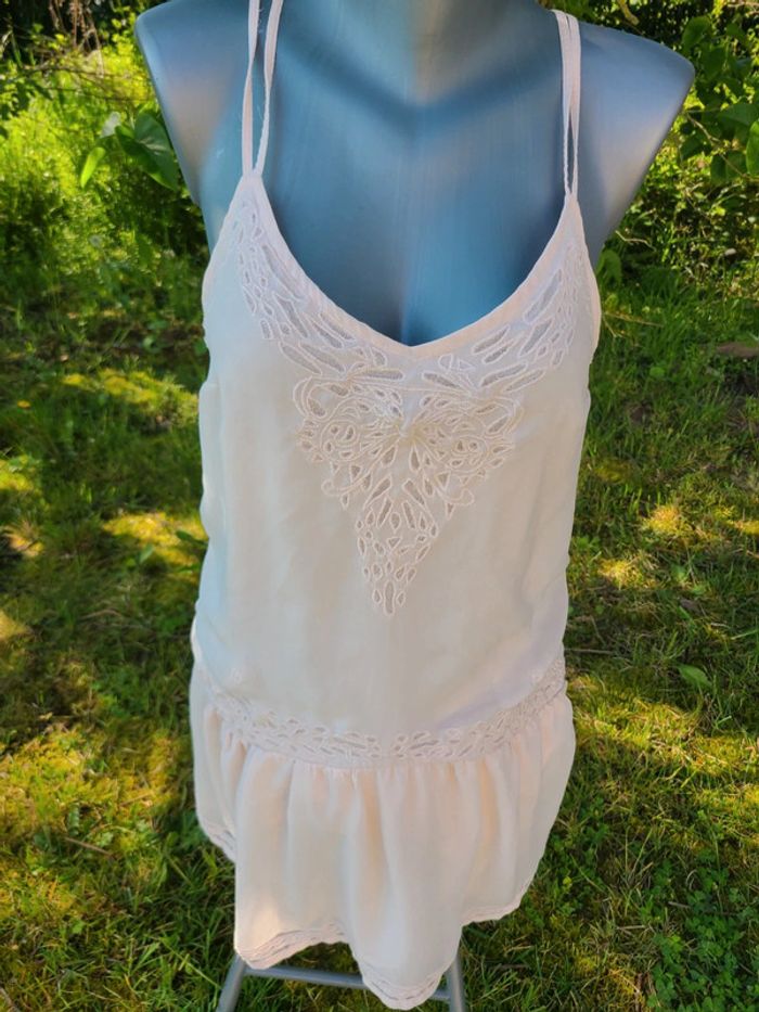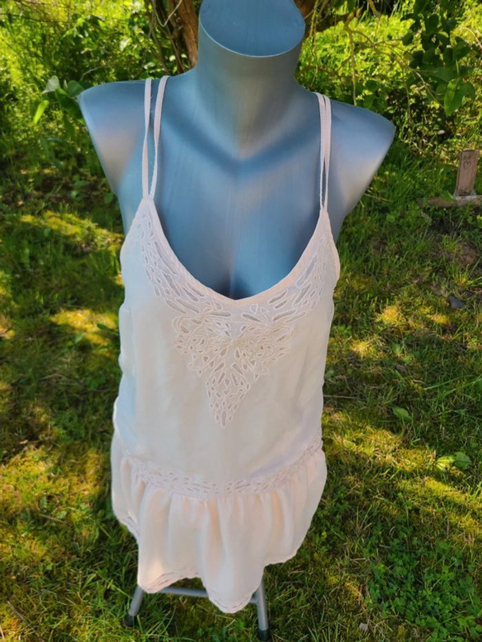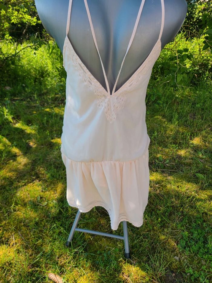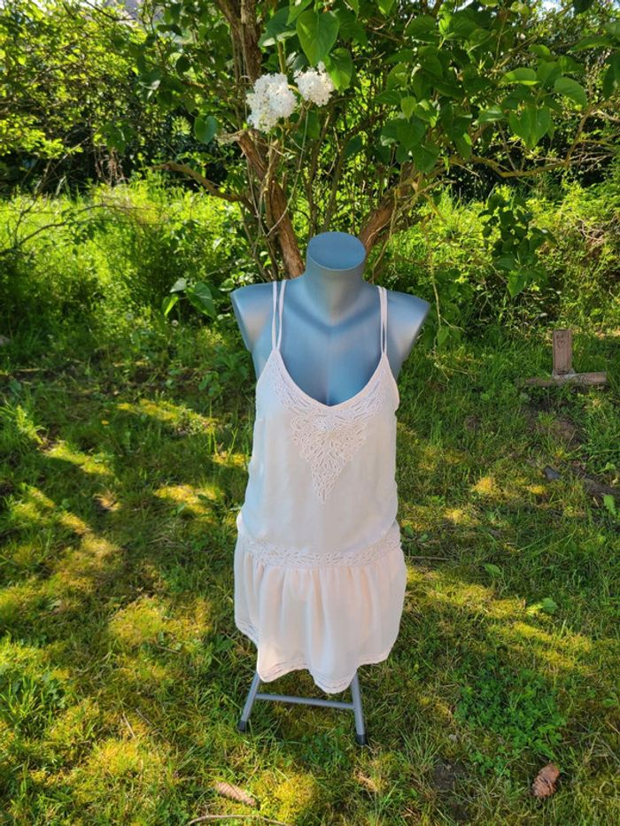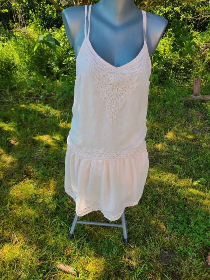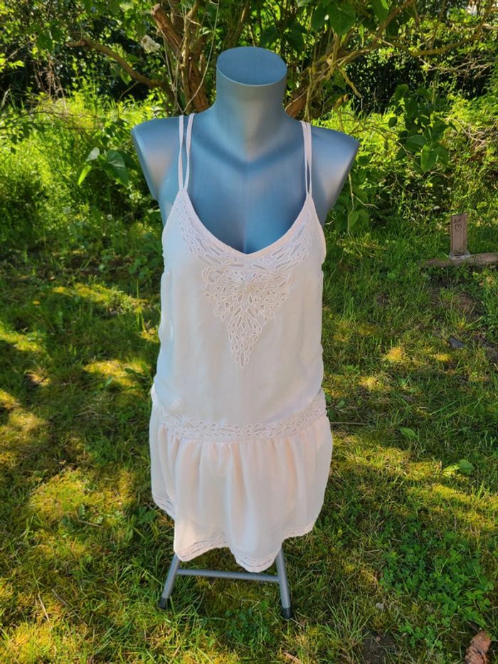 Jolie petite robe d'été doublée Type voilage Rose pâle Bretelles non réglables. Échancré dans le dos. Elle n'est pas longue et ne conviendra pas à une grande(je fais 1m80). 85 cm de long 46 cm d'aisselle à aisselle Noter L mais alors petit 40 ou grand 38. En plutôt bon état Maison non-fumeur Envoi soigné #maddy71femme38ete #maddy71femme38 #maddy71femme40