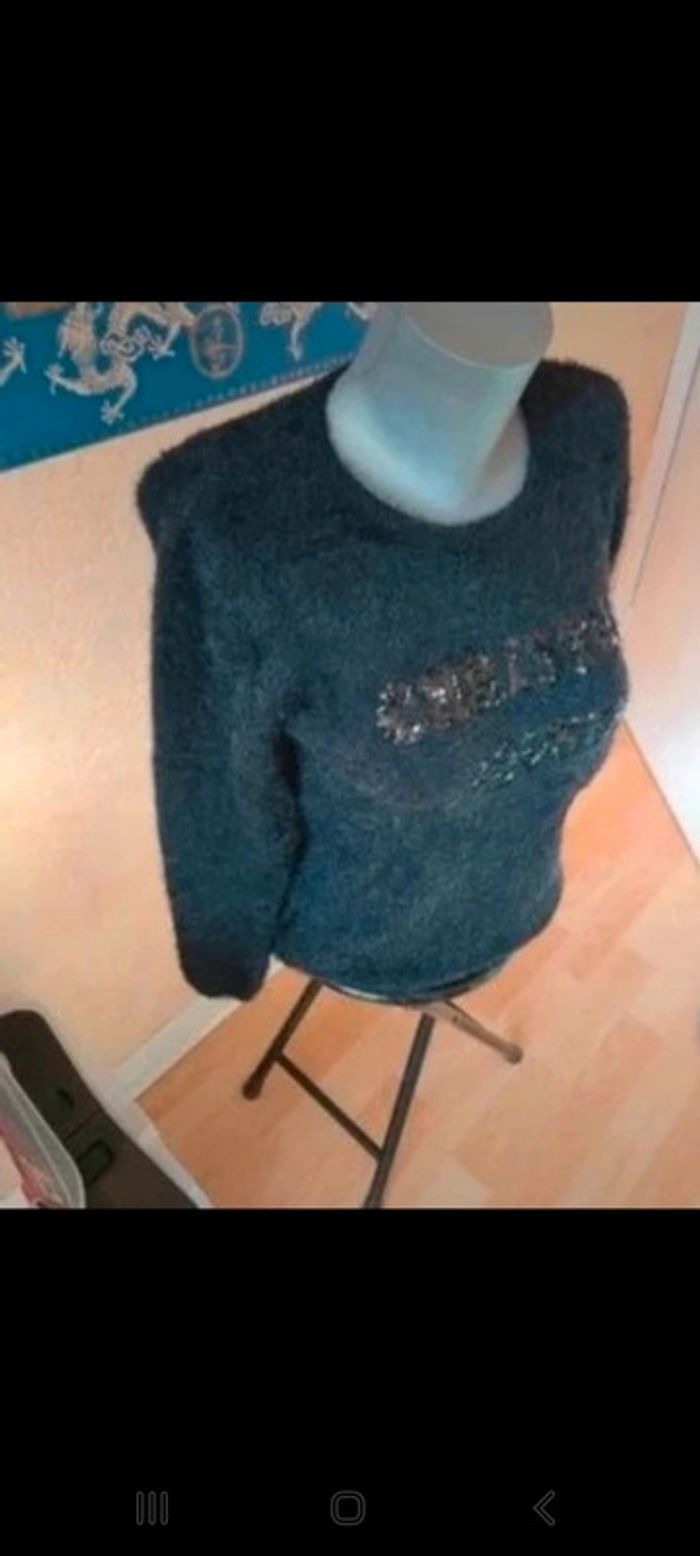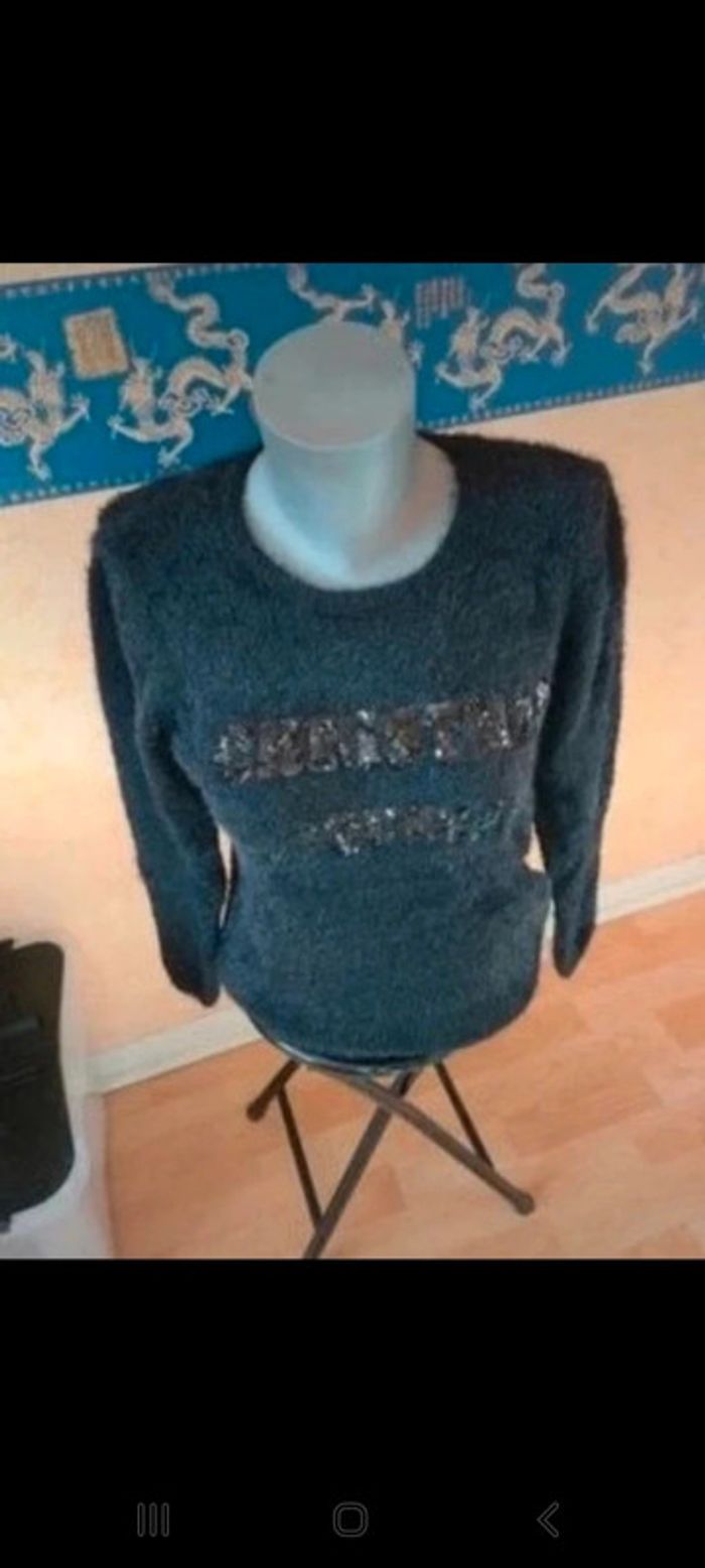 Beau pull doudou noir Écriture paillettes noires. Tout doux, tout chaud. De chez gemo, taille S donc conviendra à un 36/38. Le S chez Gemo correspond souvent à un 38. Noir. Mit 2 fois max donc en superbe état. Maison non fumeur Envoi soigné #maddy71femme38 #maddy71femme36 #pulldoudou #pulldoux #pulldoudou38 #pulldoux36