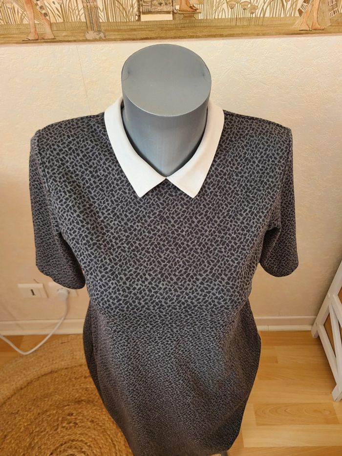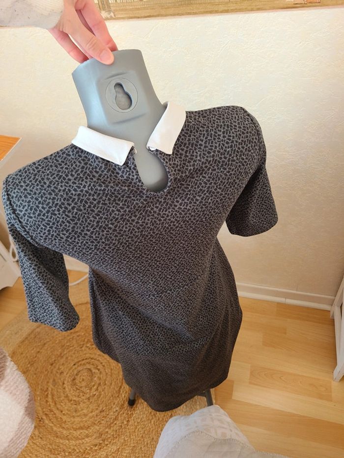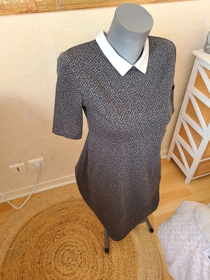 Robe grise moucheté avec col claudine. 86 cm de long et 47 cm d'aisselle à aisselle. Manches courtes. Matière agréable à porté. En bon état Maison non-fumeur Envoi soigné #maddy71femme38 38 mais pas 40 celle-ci.