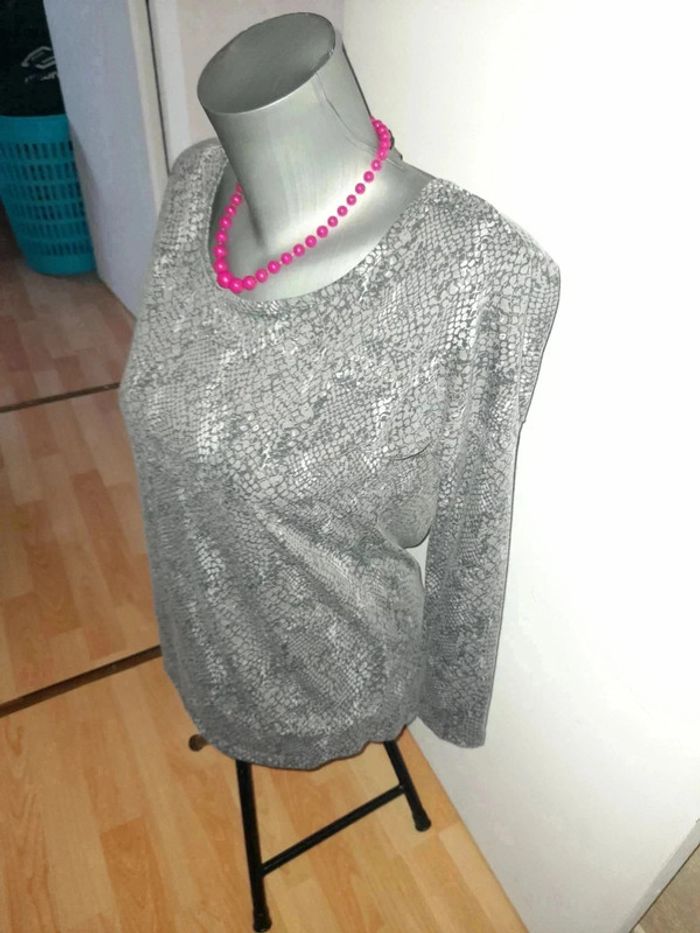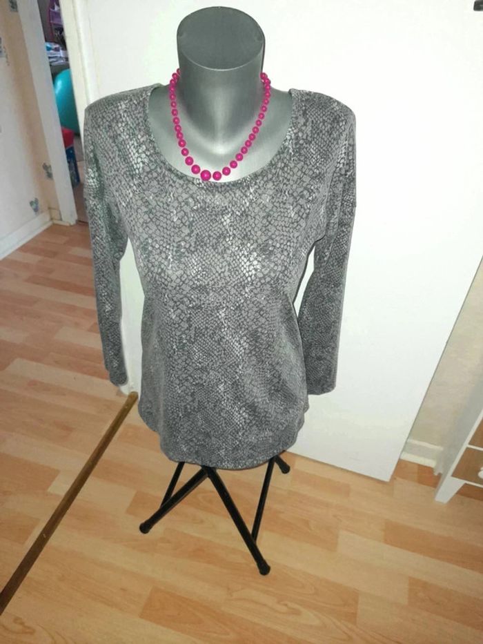 Jolie haut nouée dans le dos. Colori mauve et gris. En vraiment bon état Taille 38 Maison non-fumeur Asso Envoi soigné #maddy71femme38