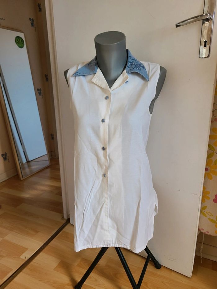 Lot de 2 chemisettes longues sans manches. Type vintage. État bon (la blanche de minis traces qui partirait sûrement avec un produit blanchissant). Mesures: Blanche: 72 de long et 44 cm d'aisselles à aisselles. Bleue: 73 de long 45 cm au veston. Maison non-fumeur Envoi soigné #maddy71femme38