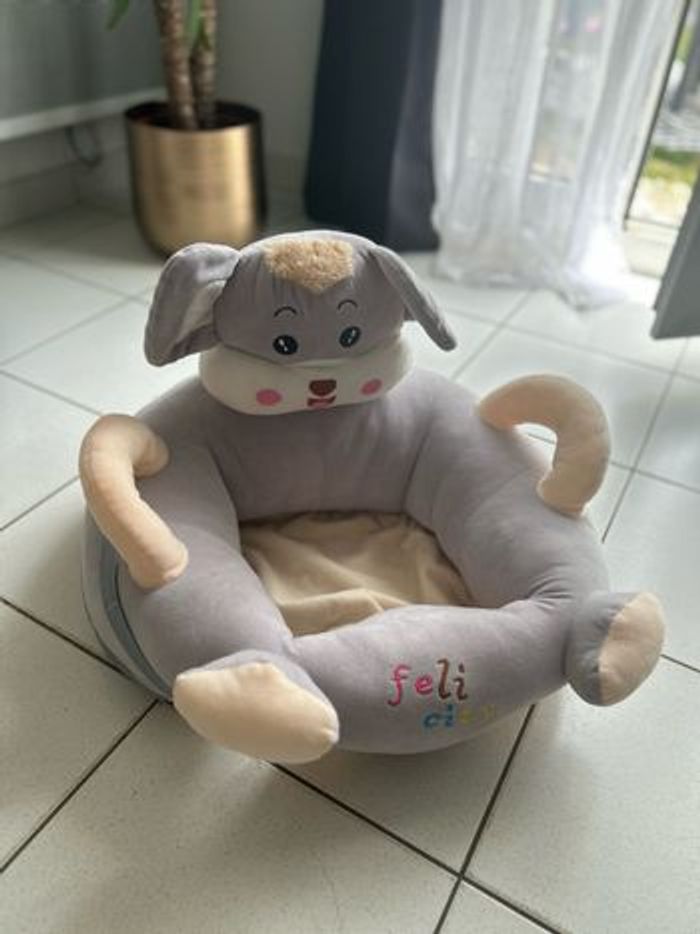 Siège pour asseoir bébé. Très peu utilisé. C’est décousu a coter de l’orreil (voir photo 3) mais sa n’altère en rien son utilisation et passe inaperçu. 😊