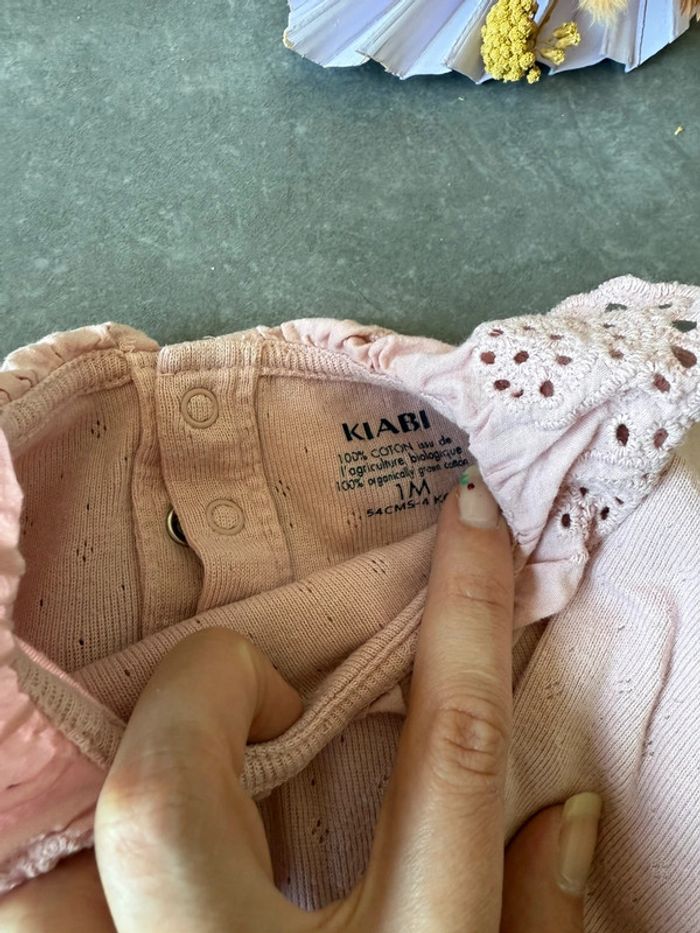 T-shirt rose kiabi taille 1 mois Col Claudine en dentelle