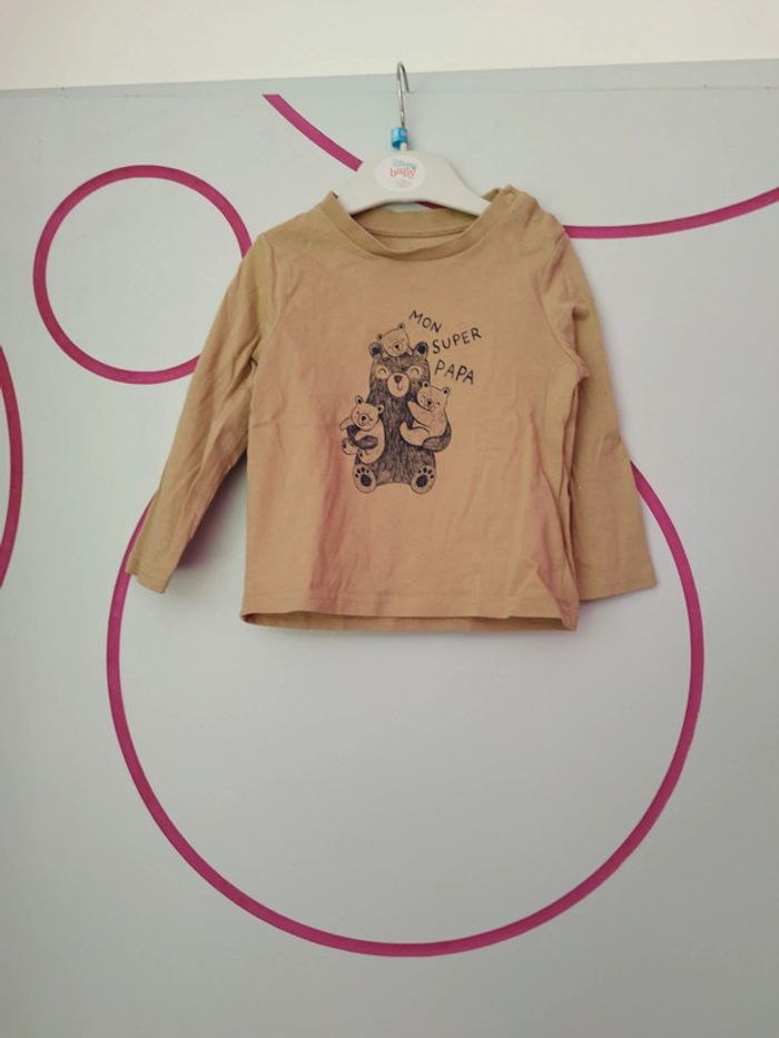 Tee-shirt manches longues marron clair. Marque Vertbaudet, taille 18 mois. Porté mais en très bon état. #teeshirt #teeshirtmancheslongues #teeshirtgarcon #garçon #bébé #bebegarcon #18mois #18moisgarçon #vertbaudet #vertbaudetgarcon #marronclair #marine