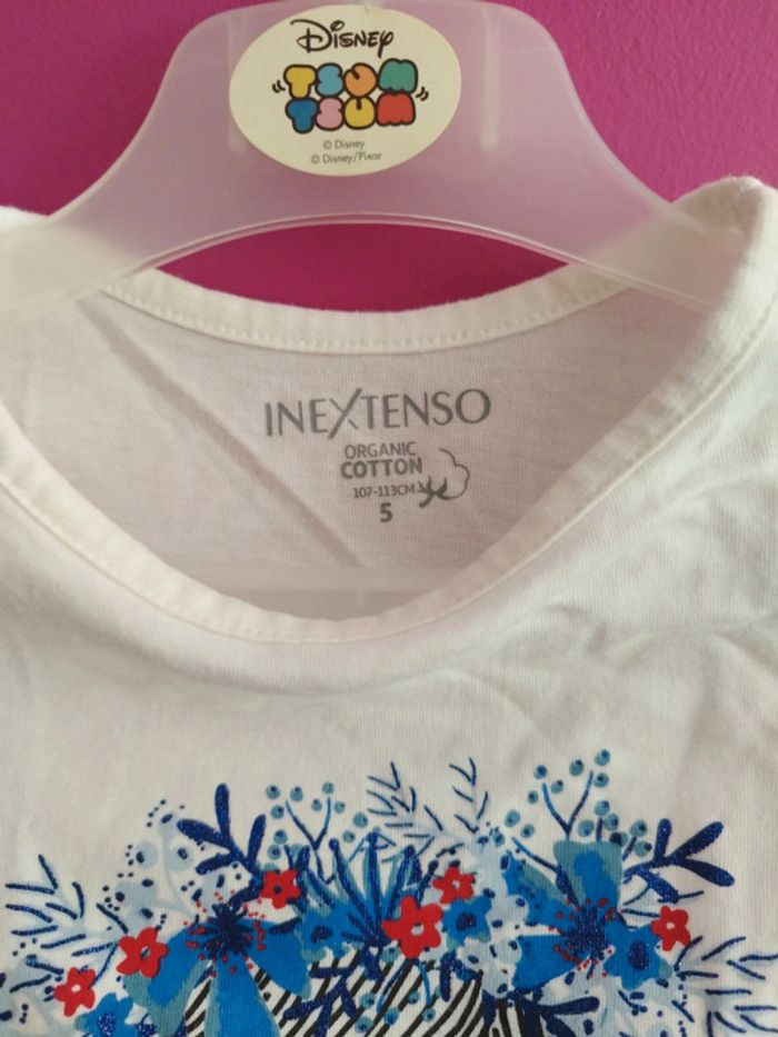 Tee-shirt manches longues crème et bleu. Marque in extenso, taille 5 ans. Portée en très bien. #teeshirt #teeshirtmancheslongues #teeshirtfille #fille #fille5ans #taille5ans #5ansfille #inextenso #inextensofille #blanc #bleu