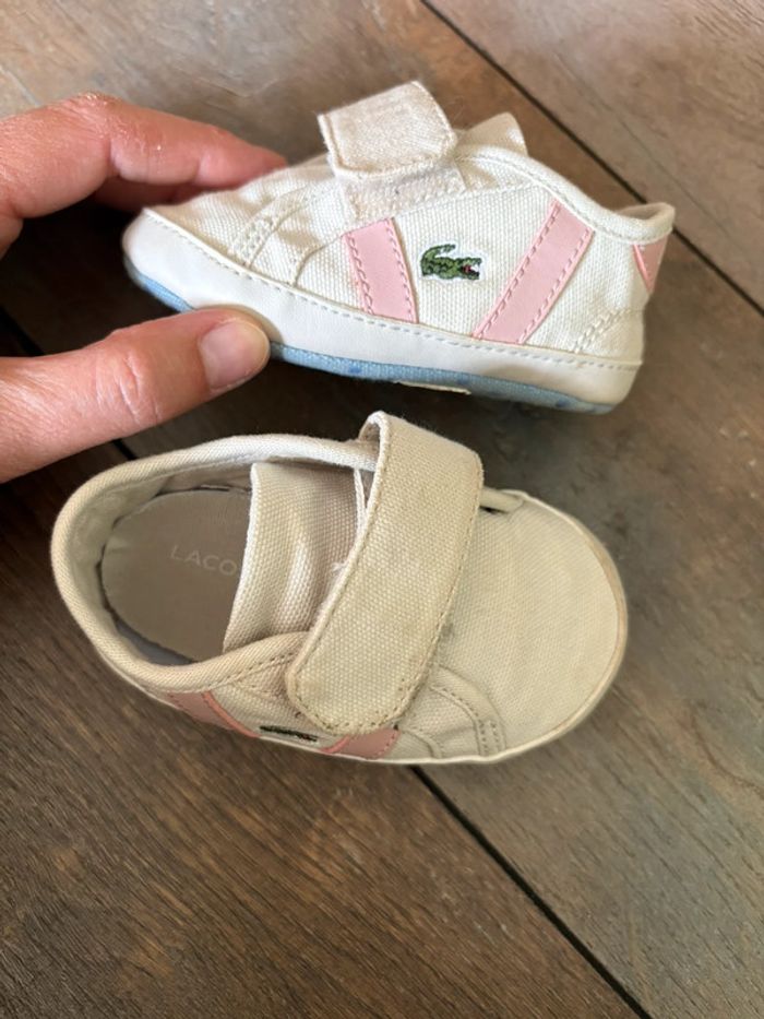 Petites chaussures Lacoste taille 19 beige rose - photo numéro 1