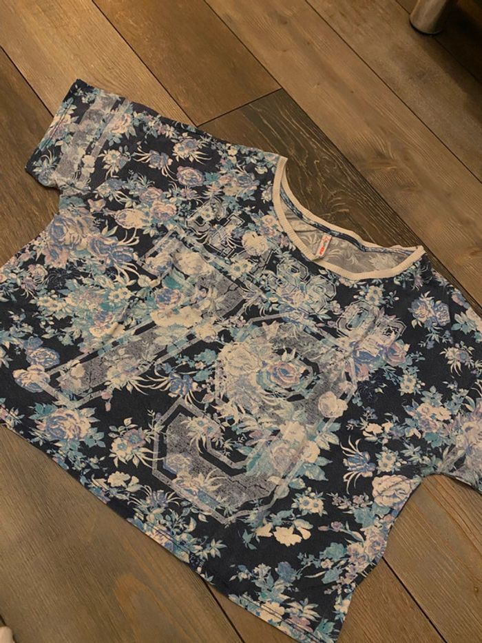 T-shirt bleu fleuri M FBsister - photo numéro 1