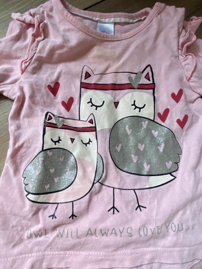 Ensemble fille rose hiboux cœur 12 mois - photo numéro 3
