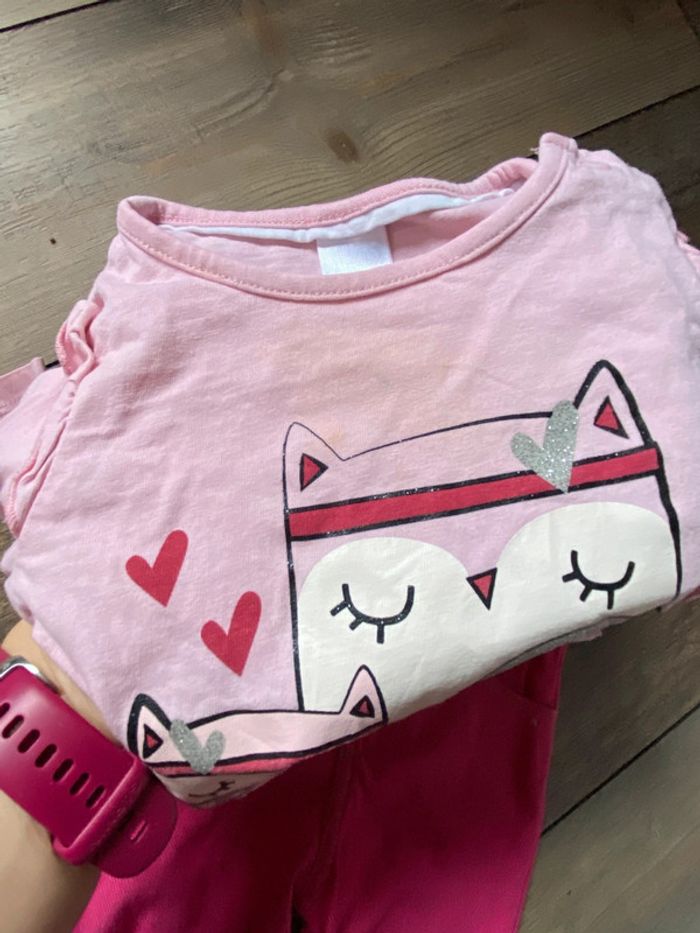 Ensemble fille rose hiboux cœur 12 mois - photo numéro 5