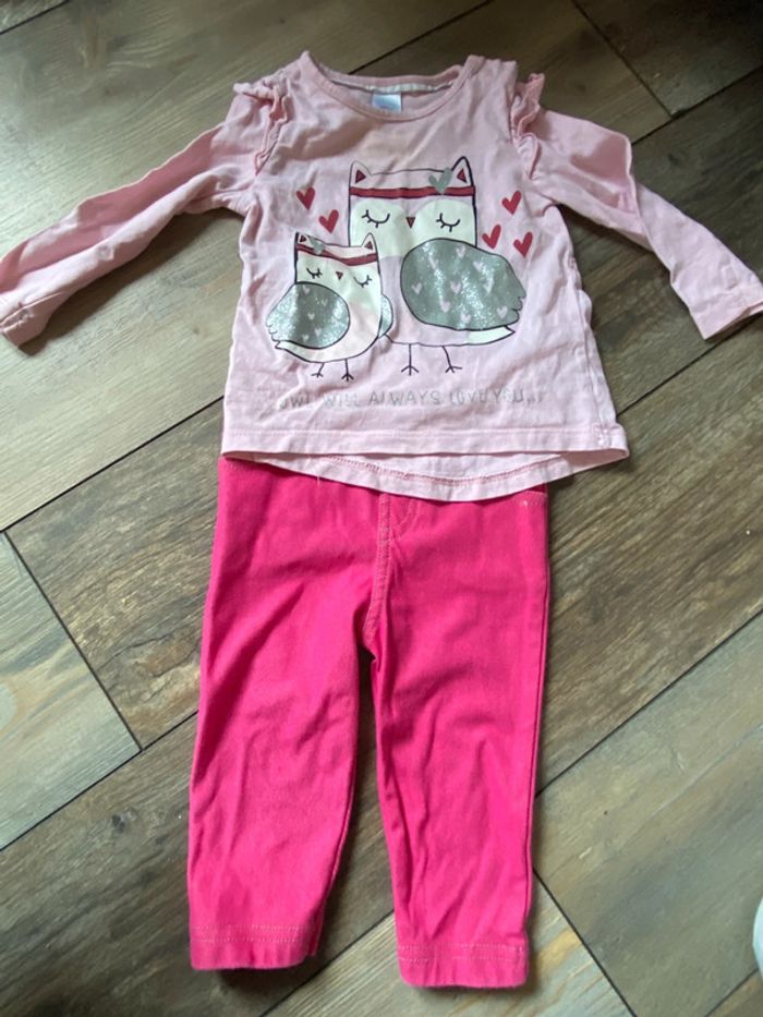 Ensemble fille rose hiboux cœur 12 mois - photo numéro 1