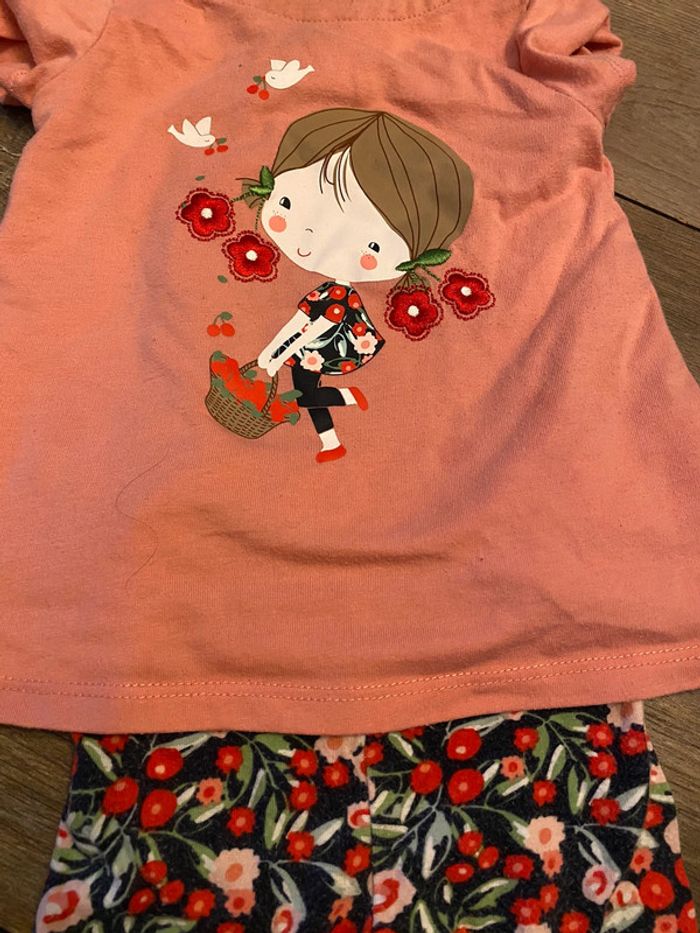 Ensemble petite fille et fleurs rose et rouge 6 mois