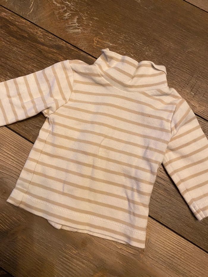 Petit pull col roulé rayé blanc et beige 1mois kitchoun - photo numéro 1