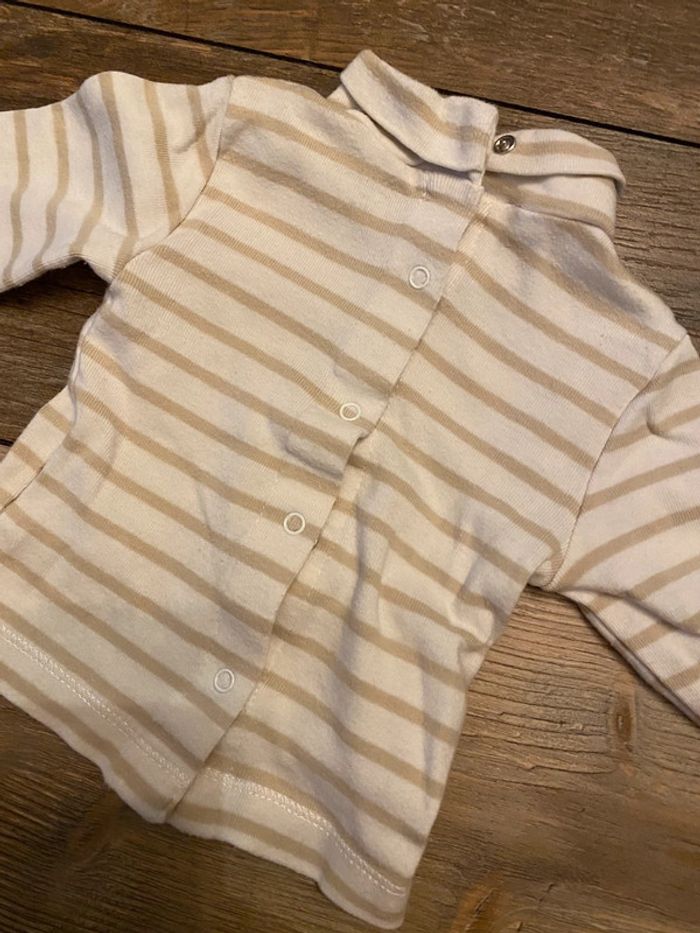 Petit pull col roulé rayé blanc et beige 1mois kitchoun - photo numéro 3