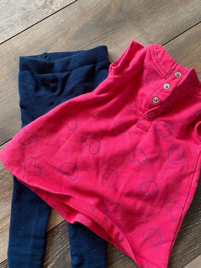 Ensemble fille kitchoun 1mois robe rose cœurs bleus - photo numéro 3