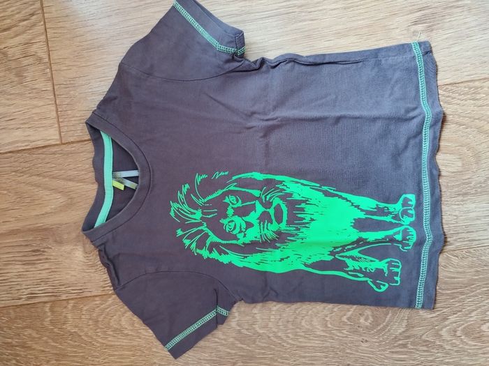 T-shirt manches courtes anthracite avec un lion vert