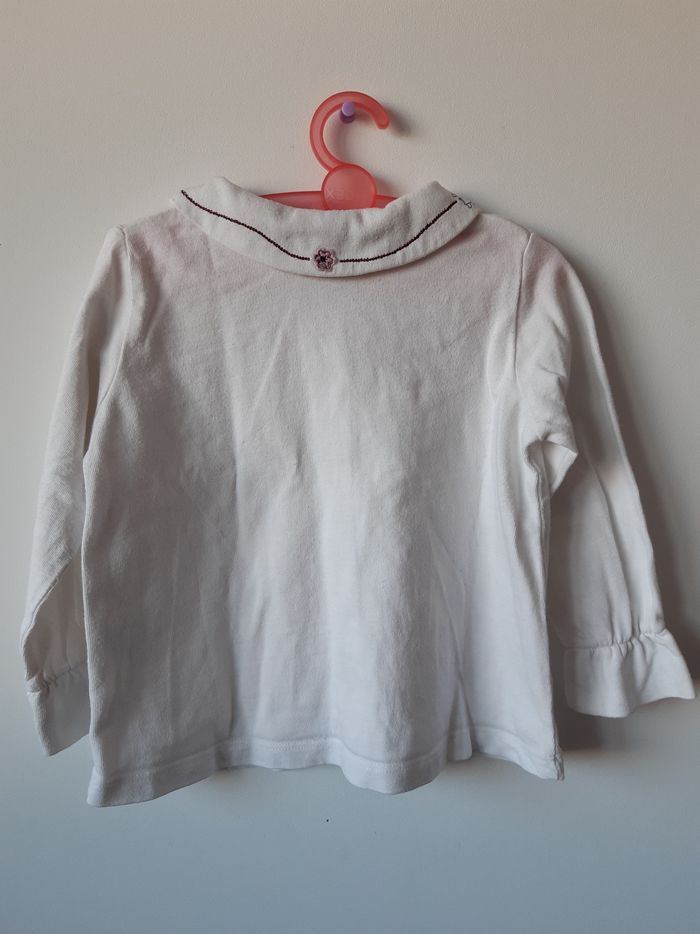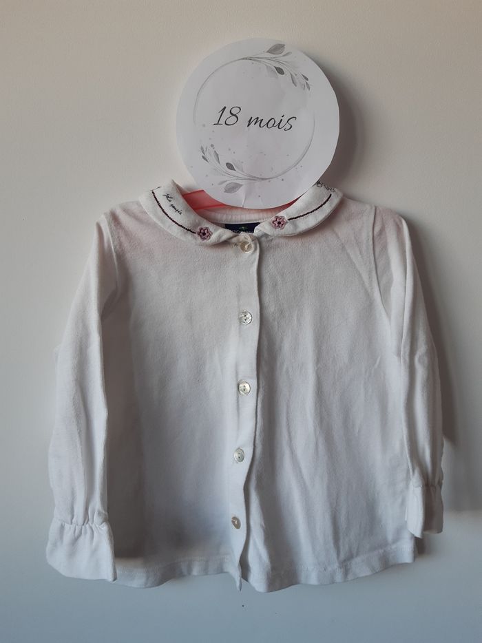 Haut manches longues Bébé fille 18 mois Sergent Major Blanc motifs fleurs 🌸 sur le col Boutpns sur le devant D'autres photos possible sur demande Merci de privilégier les envois par Mondial Relay