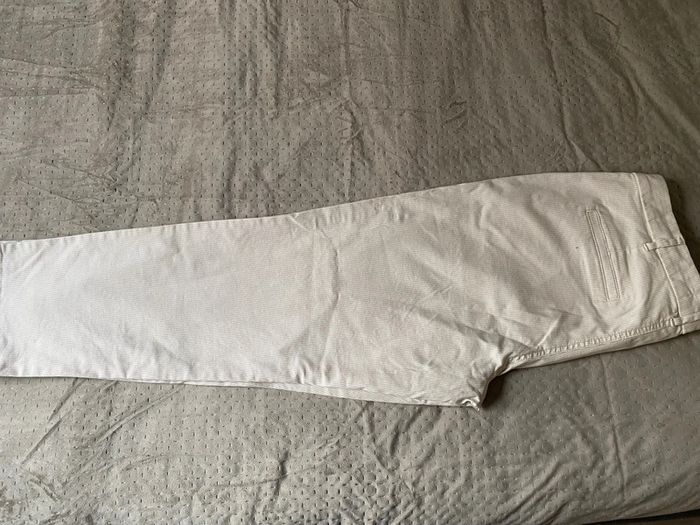 Pantalon femme en coton, rayures fines, beige et blanche, taille 42 comme neuf Forme Chino