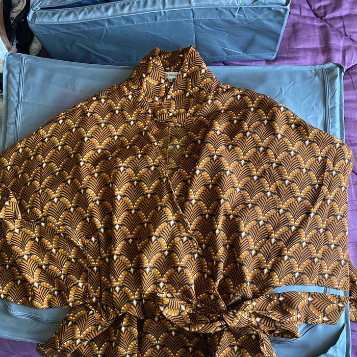 Top, femme manches trois quarts imprimer marron et noir. Taille 38 40