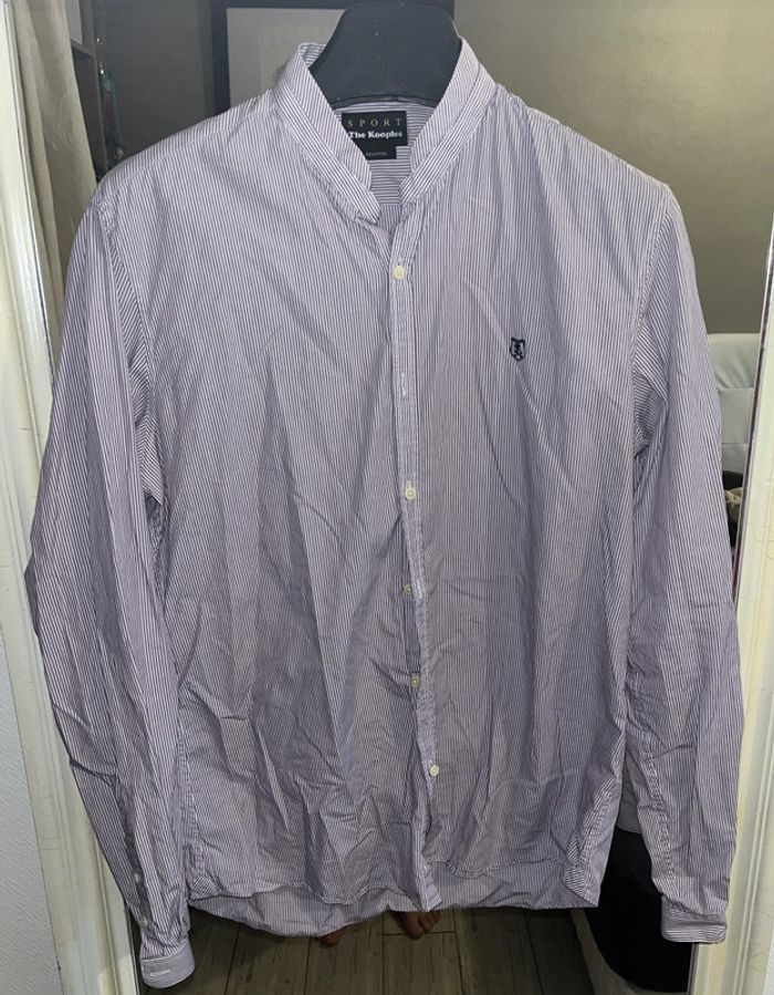 Chemise manches longues homme coupe ajustée The Kooples Sport Rayée blanc et violet Taille M Portée qu'une seule fois