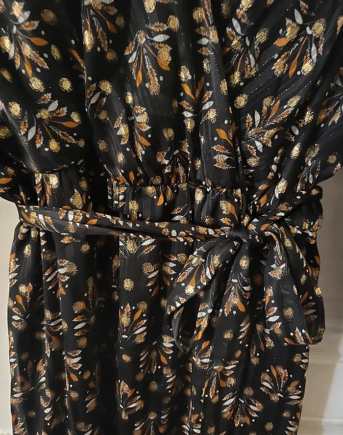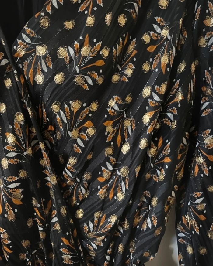 Robe fluide à motif fond noir, avec fils doré. Porté une fois Taille: M