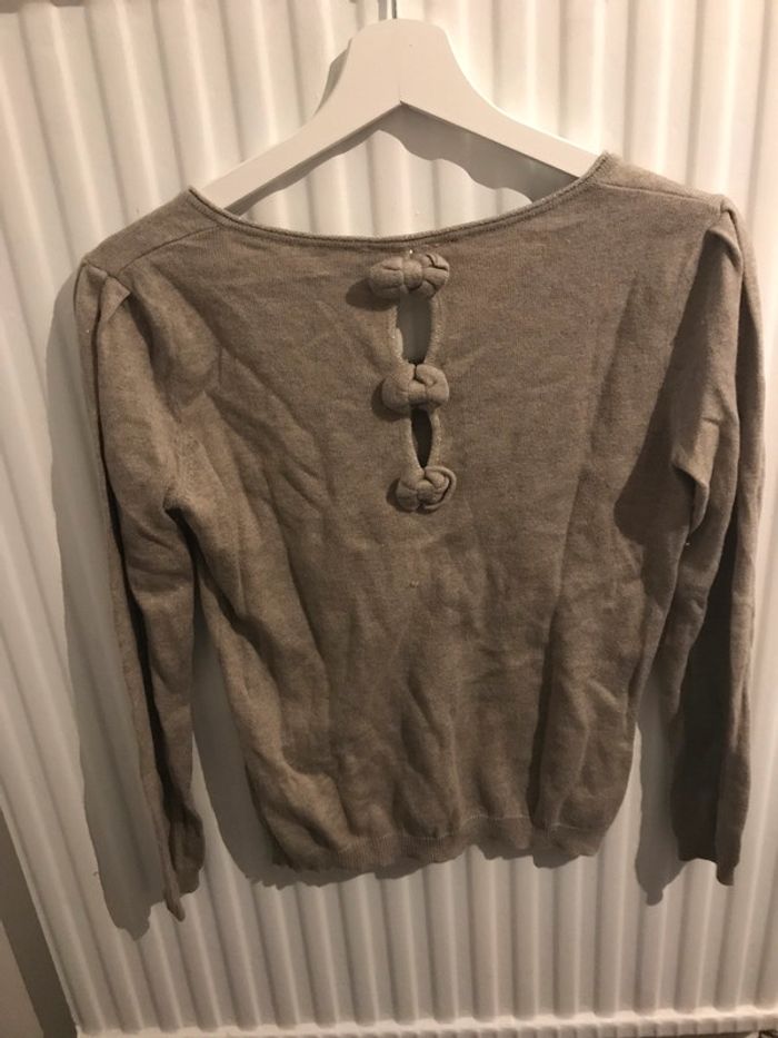 Pull beige avec noeuds dans le dos Attention fait des petites peluches