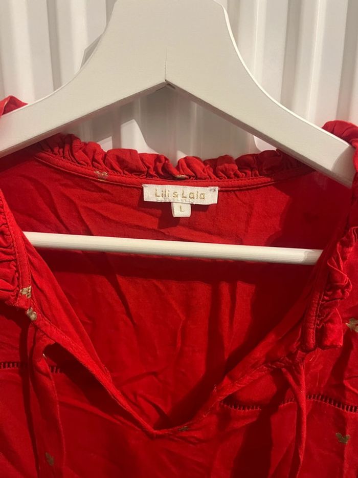 Blouse rouge avec petits dessins doré - photo numéro 3
