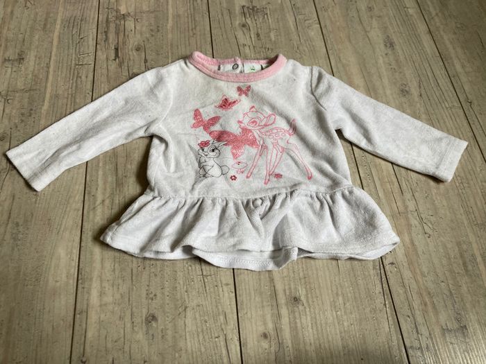 Pyjama deux pièces Bambi Haut blanc Bas rose Taille 6 mois