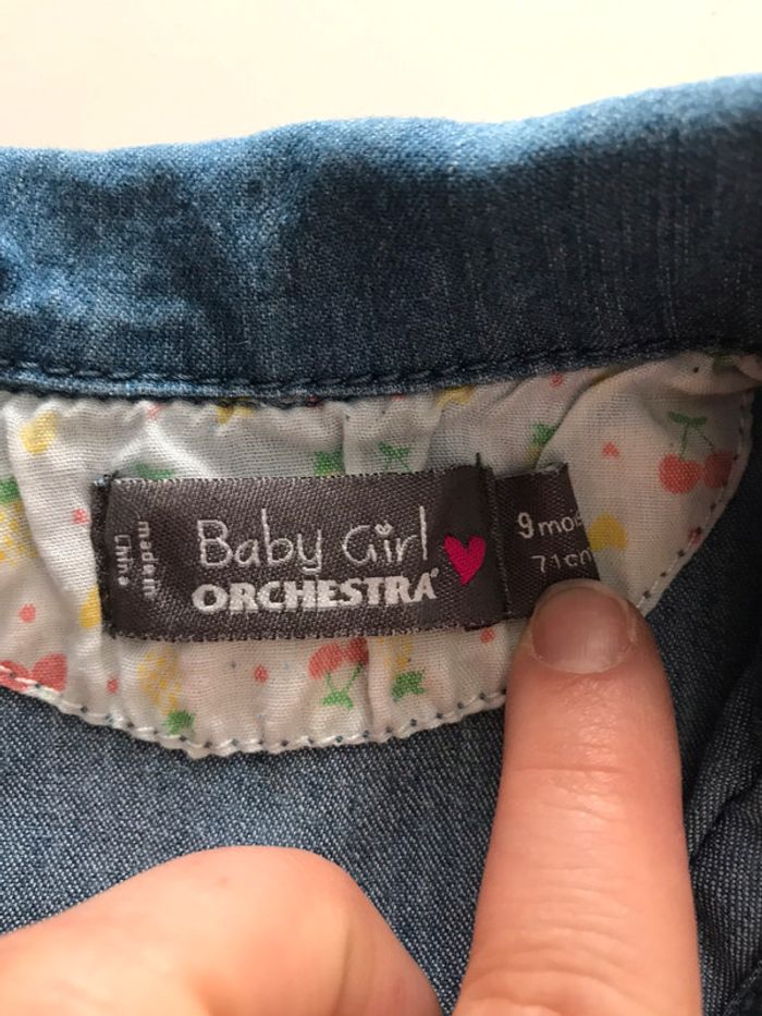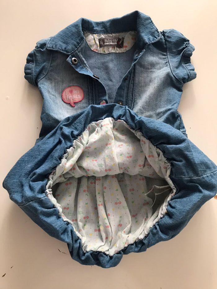 Robe en jeans Petits badges girly Neuve, jamais porté Taille 9 mois