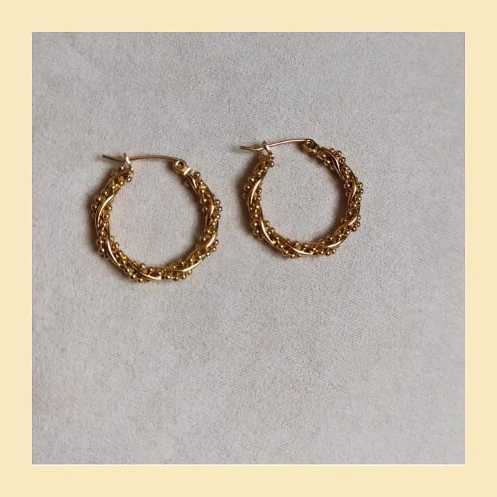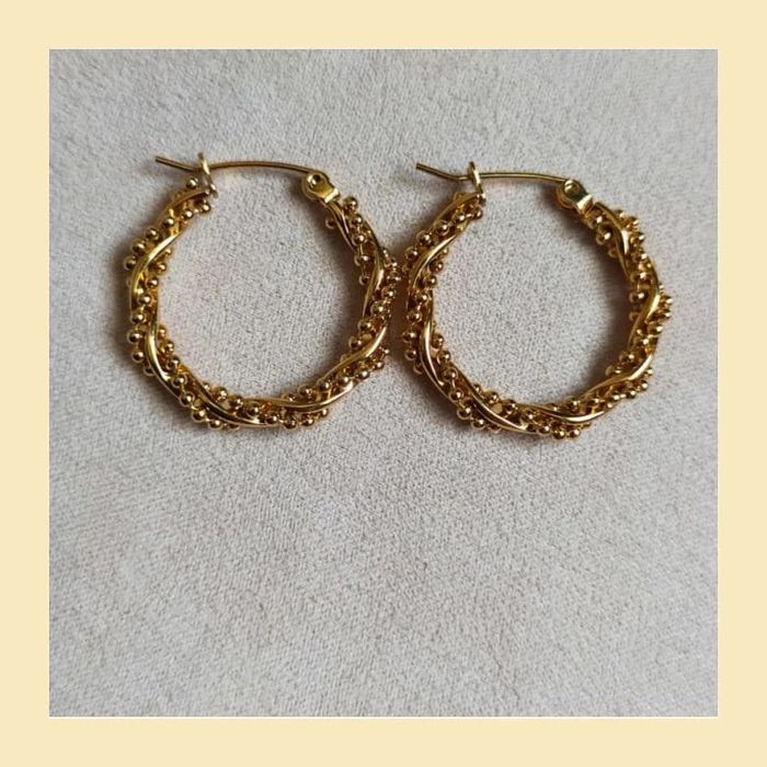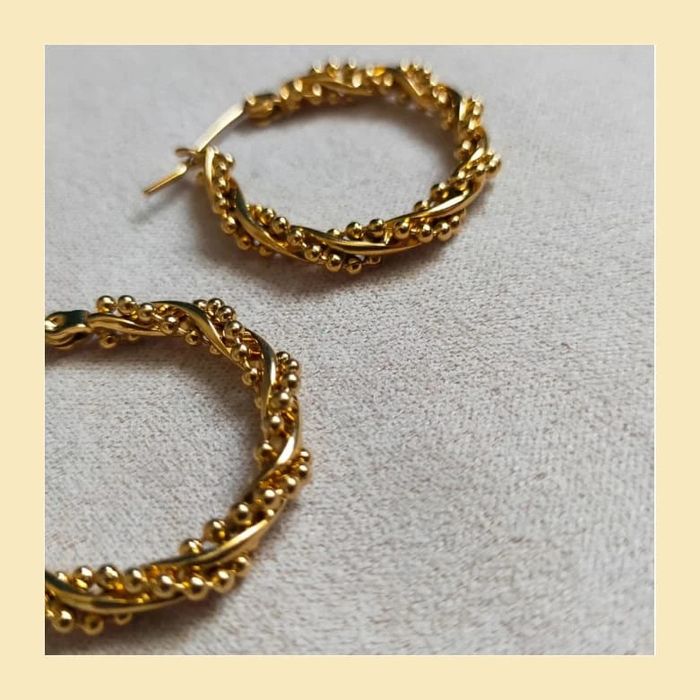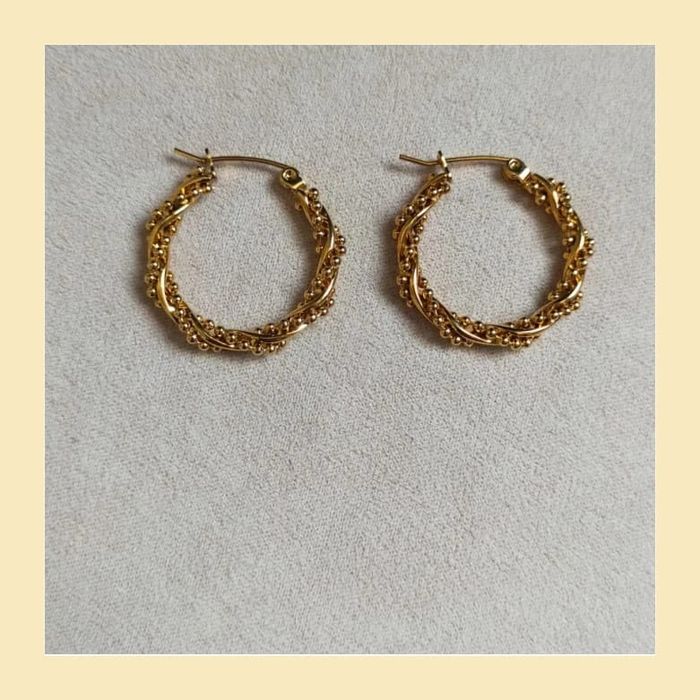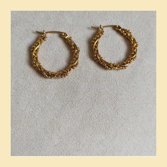 Boucles d’oreilles créoles dorées – Effet tressé & perles