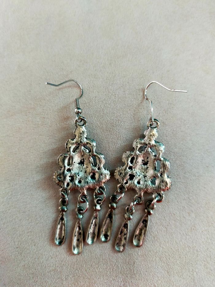 oucles d'oreilles pendantes style ethnique bohème argenté & turquoise - Collection Terres d'Ailleurs - photo numéro 4