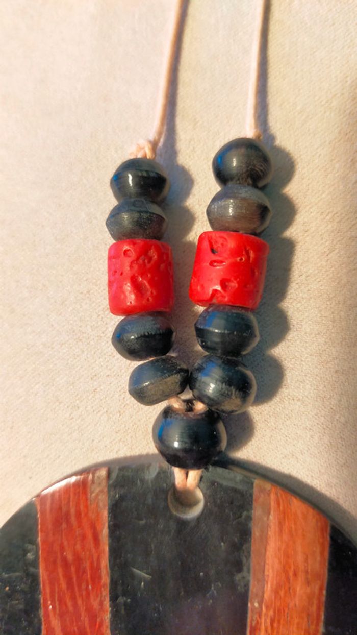 Collier pendentif rond noir & bois – Style ethnique - photo numéro 7