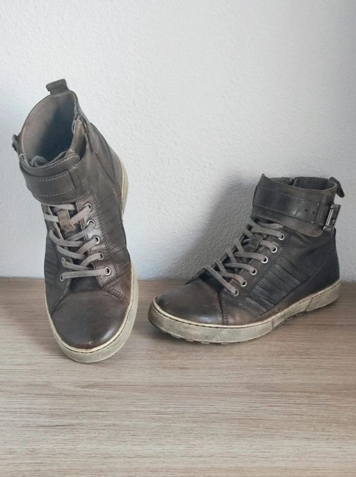 Baskets haute marron lacet sangle cuir / San Marina - 41 - photo numéro 1