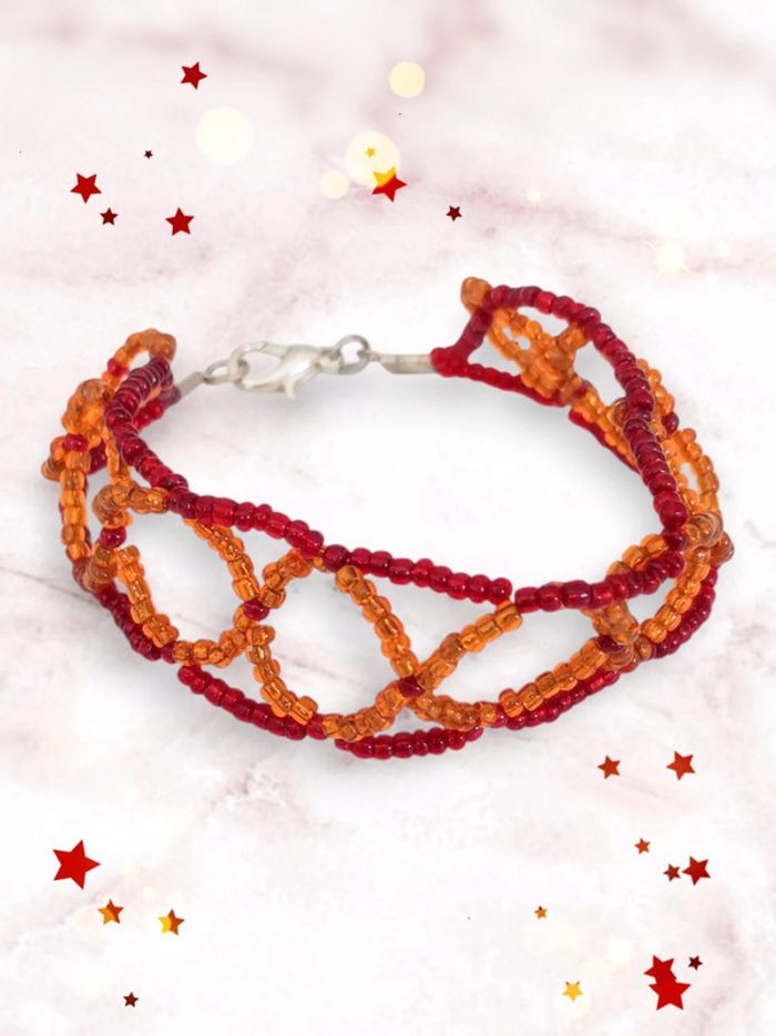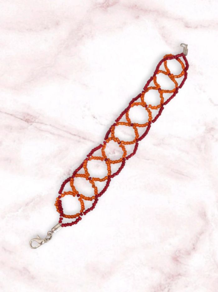 Bracelet y2k tissage perle orang et bordeaux 🇨🇵 Fabrication Artisanale - 18cm - photo numéro 1