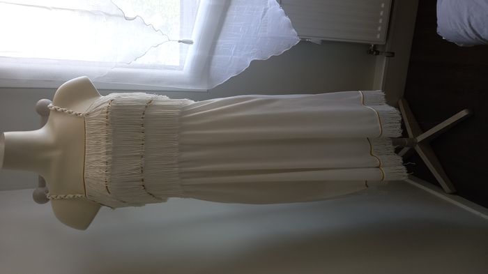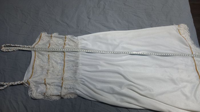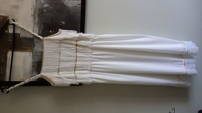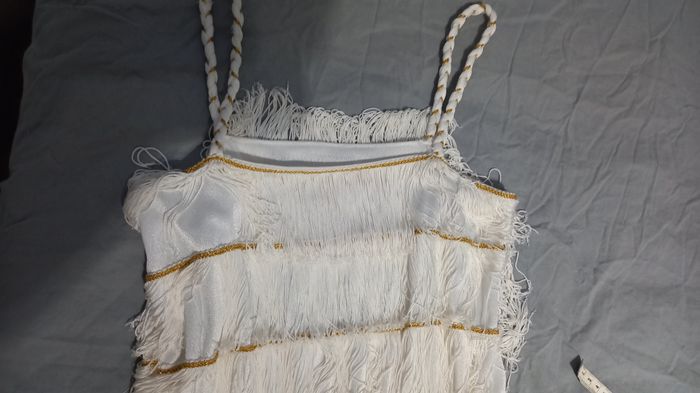 Robe style Charleston Blanche et broderies fils dorés et entièrement doublée Tissus très fluide et de très bonne qualité. Sans marque mais faite par un couturier Longueur 102 cm + les franges Taille 38 #T38_imoddeco