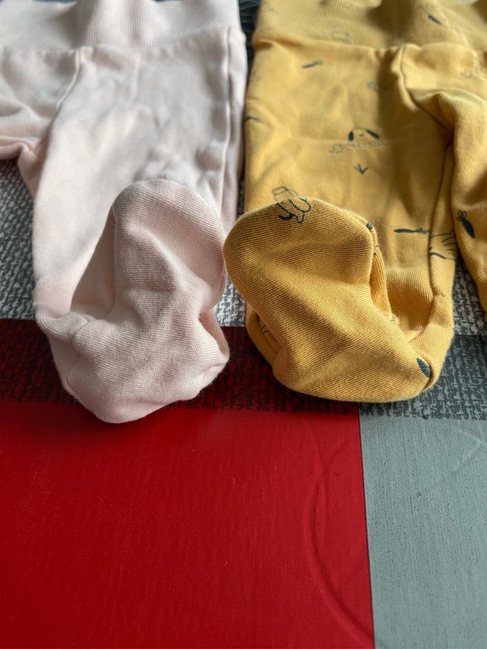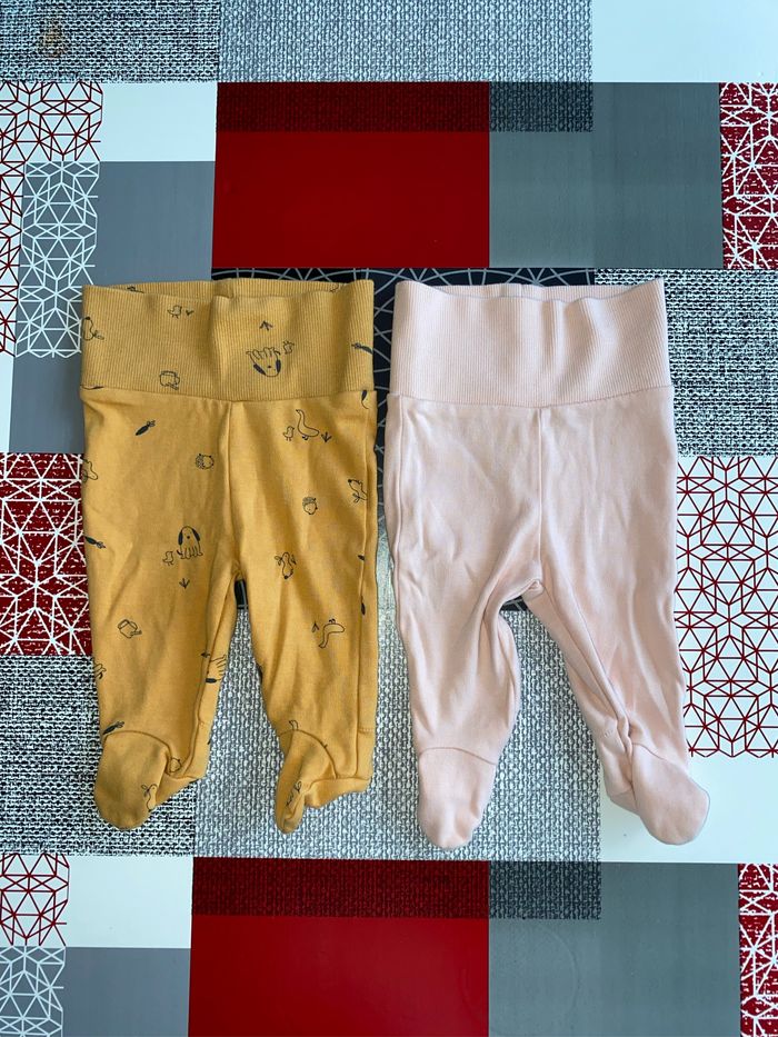 2 legging bébé fille Kiabi Taille 1 mois (52-55cm) Couleur 1 moutarde imprimé, 1 rose uni, Matière: 100% coton En très bonne état Envoie Rapide 👍