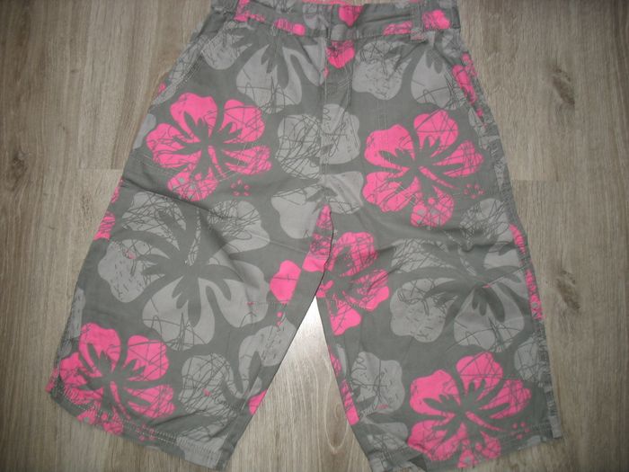 BERMUDA GRIS A FLEURS GARÇON "OVERGAME" - 10 ANS - n°04 Bermuda gris foncé à fleurs rose et gris clair - Élastique dos - Plusieurs poches - Matière : 100% coton. Article d’occasion en très bon état - Sans trou - Ni tache - Lavé et repassé pour la Vente. Possibilité d'envoyer d'autres photos sur simple demande. Allez voir mes autres ventes, je vide les placards. Beaucoup de vêtements de marque et beaucoup de jouets. Maison non-fumeur - Sans animaux. Réduction lot activée. Remise en mains propres ou possibilité d'envoi au tarif en vigueur à votre charge. Retour Refusé. Pour tout renseignement, n'hésitez pas à me contacter, je répondrai volontiers à vos questions. Réponse Assurée. Pour Consulter mes autres annonces tapez Nathg2210.