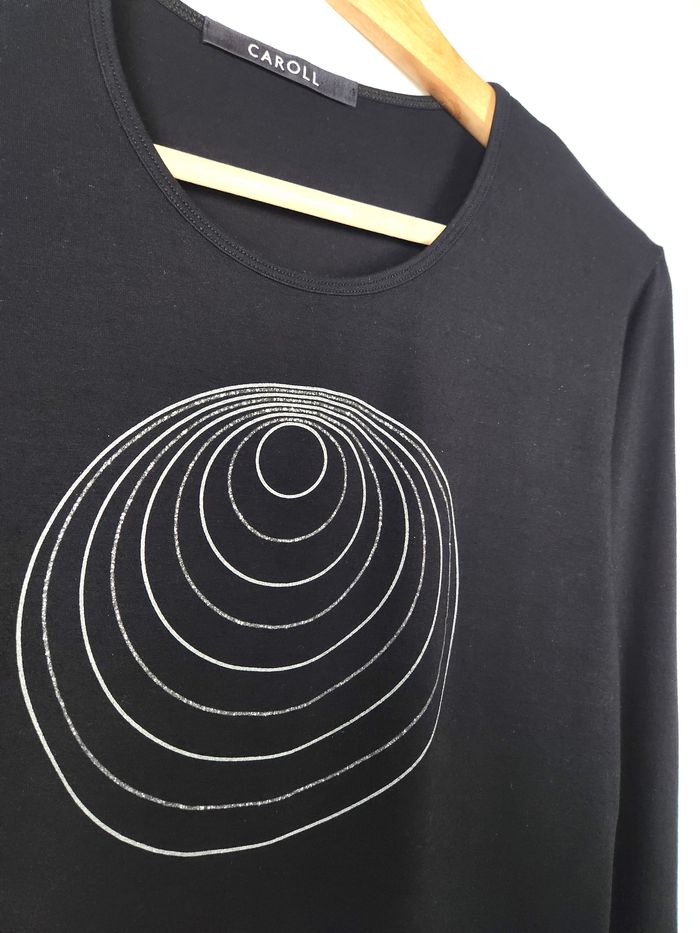 Caroll Blouse noir à manche longue motif géométrique Taille 44