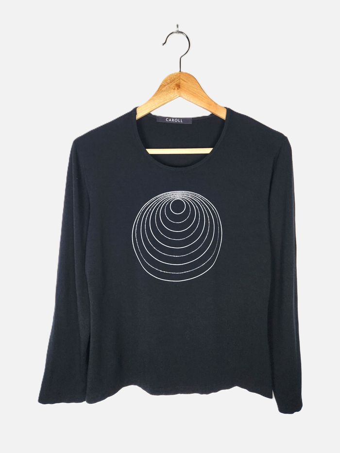 Caroll Blouse noir à manche longue motif géométrique Taille 44 - photo numéro 1