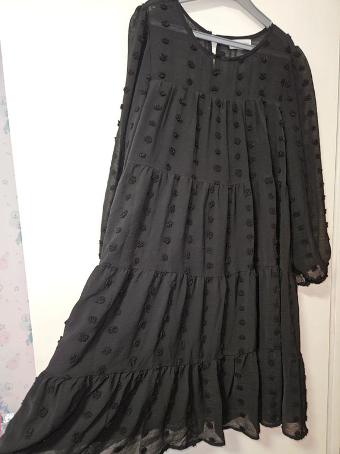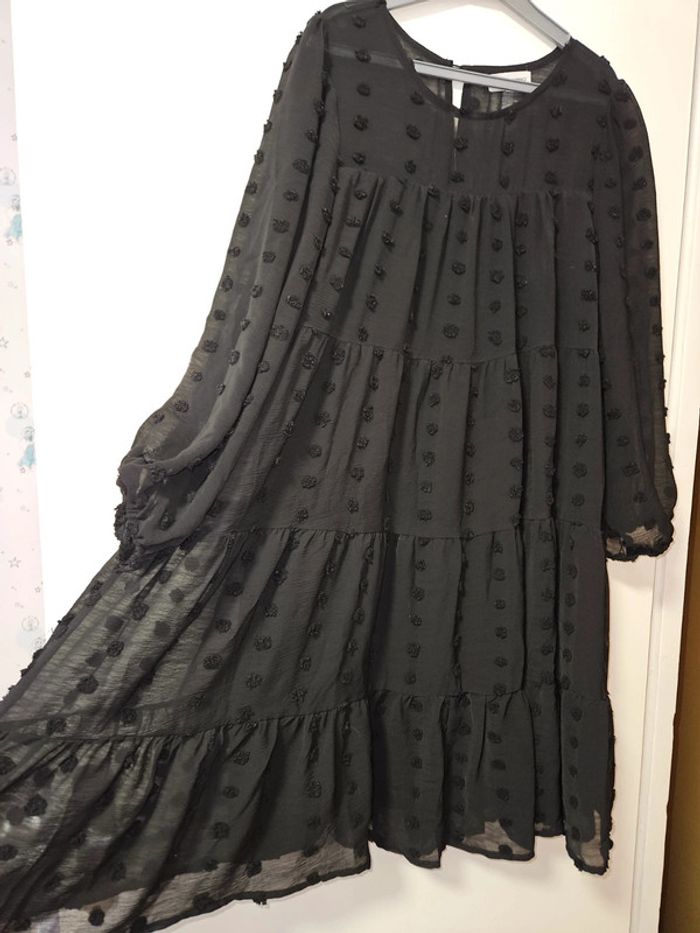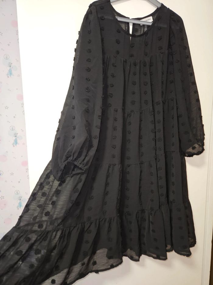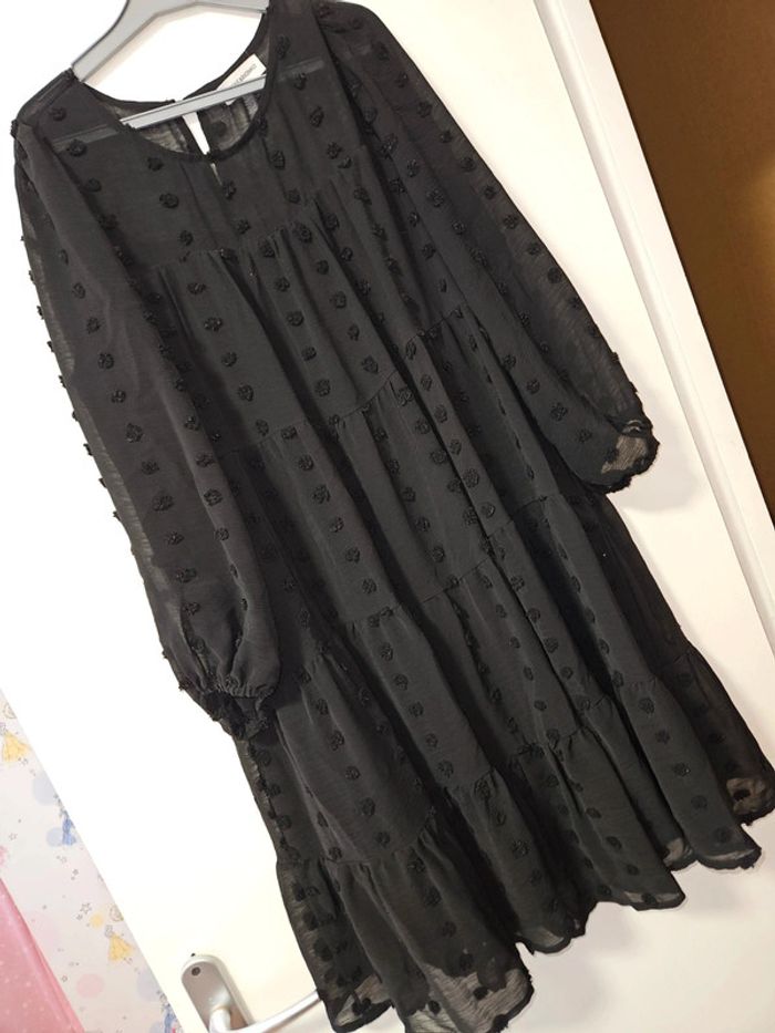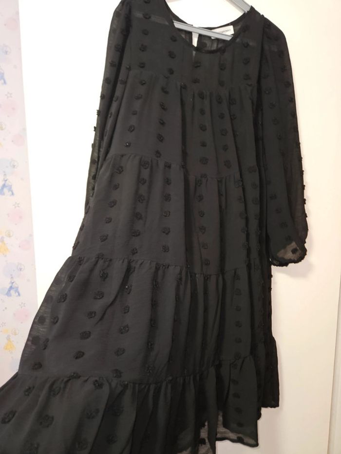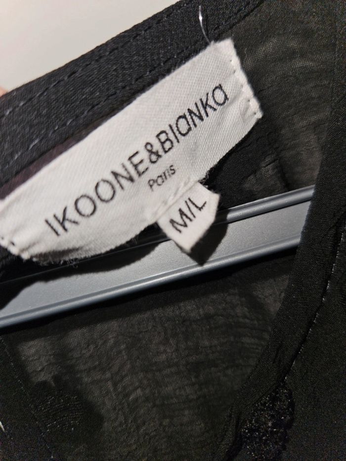 Jolie robe Ikoone et Bianka Portée deux fois Maximum Désolée pour la mauvaise qualité des photos. La robe est bien noire. Très élégante Taille M / L mais plutôt 42. Possibilité de prendre des mesures Avec doublure #robeikooneetbianka #robeelegantenoire #robeapois #robevoile