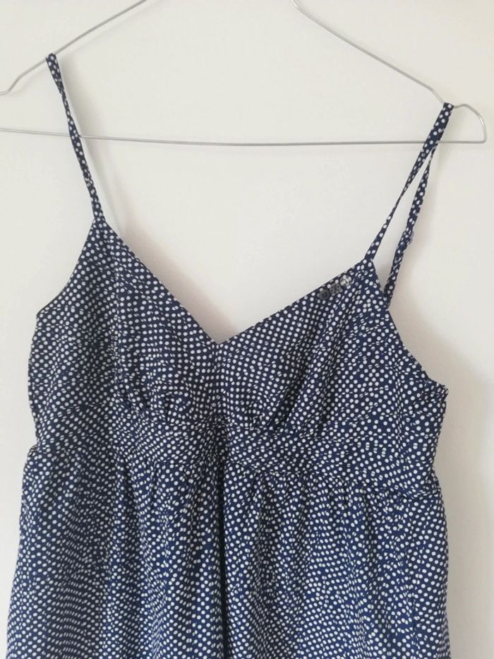 Robe DDP à volants en taille XS en excellent état de couleur bleu marine à pois blanc 100 % polyester