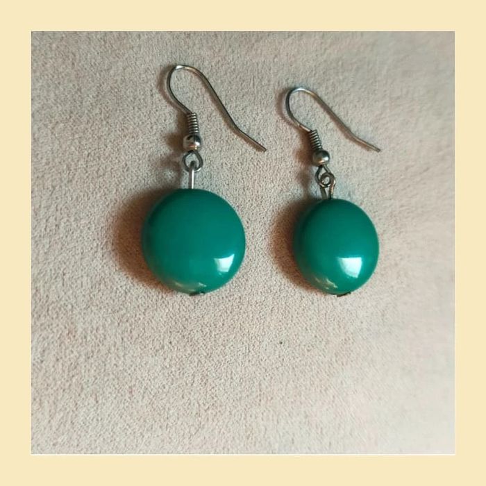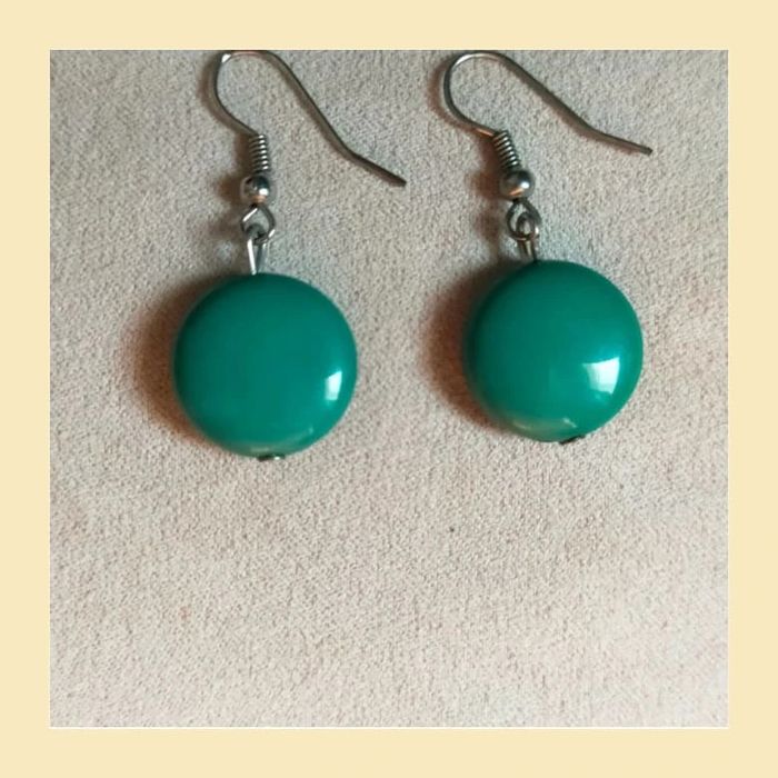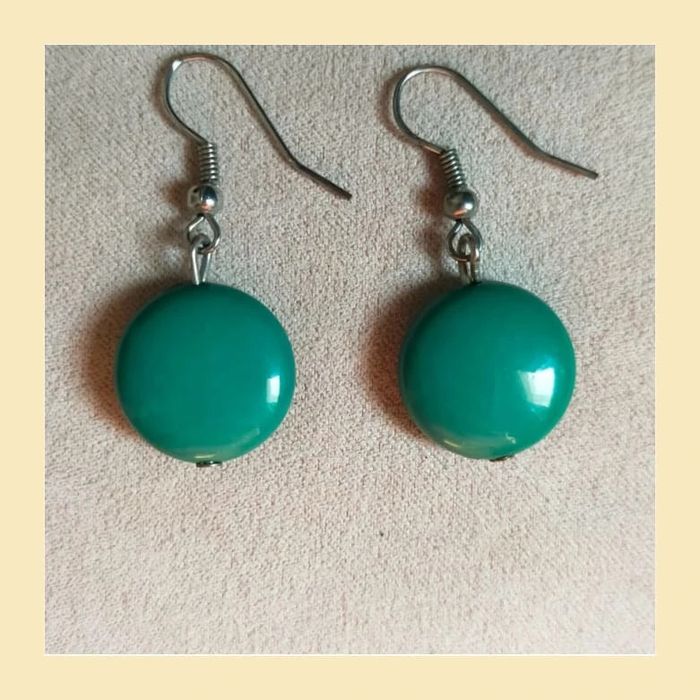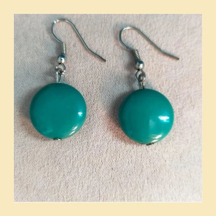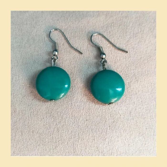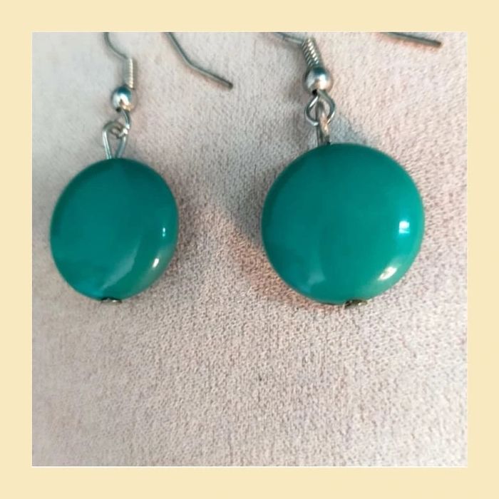 Craquez pour ces jolies boucles d’oreilles pendantes, composées d’une perle ronde effet nacré de couleur turquoise. Simples, lumineuses et pleines de pep’s, elles apportent une touche de fraîcheur à toutes vos tenues. 💧 Couleur : turquoise vif 📏 Longueur totale : env. 3,5 cm 📎 Fermoir : crochet en métal argenté 📦 État : très bon état ✨ Style : bohème, estival, décontracté 🌿 Matériaux : perle synthétique + métal 💡 Idéales à porter avec une robe fluide, une chemise blanche ou un top coloré. Le genre de bijou qui donne tout de suite bonne mine ! 📦 Envoi rapide & soigné. Possibilité d’envoi en lot ou petit cadeau surprise pour les commandes multiples ! #bouclesdoreilles #bijouxturquoise #bijouxfantaisie #bohème #été #bijoucoloré #perlesturquoise #bijouoriginal #bijouxfaitmain #bijouxdemode #bijouxfemme #jolietrouvaille