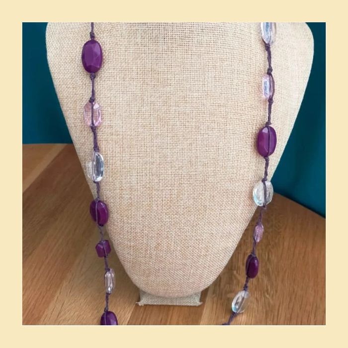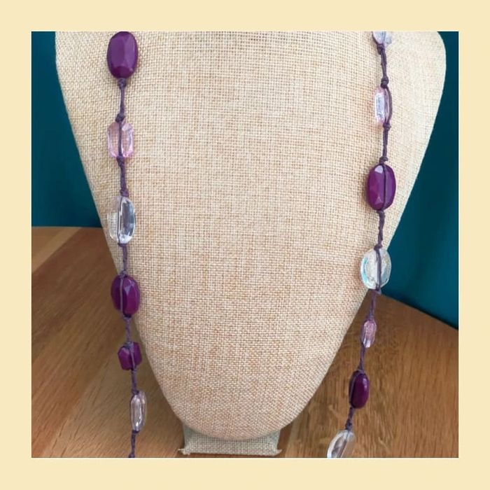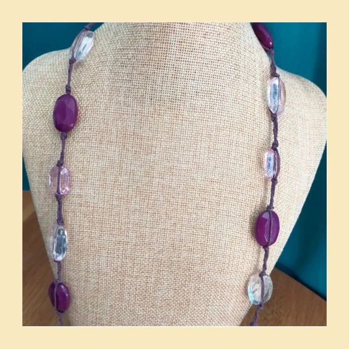 Collier vintage perles violettes et roses facettées