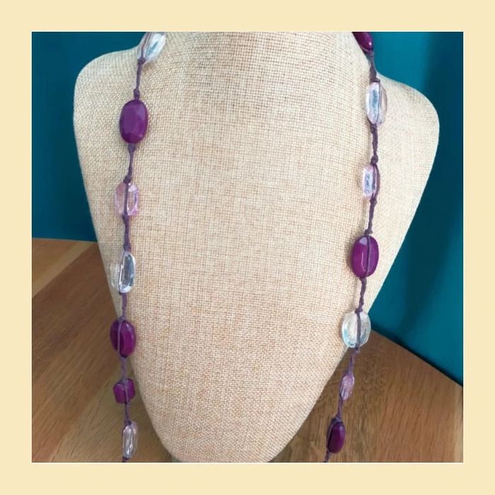 Collier vintage perles violettes et roses facettées - photo numéro 13