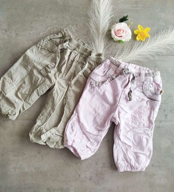 Lot de deux pantalon bébé plusieurs marques le rose 4/6 mois h&m la kaki 6 mois
